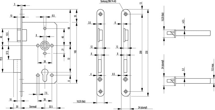 BKS Behörden-Einsteckschloss 0615 PZW 24/55/72/8 mm DIN rechts ( 3000251563 )