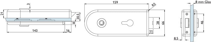 HERMAT Glastürschloss 6013 PZ - Venezia Edelstahl matt ( 3000253940 )