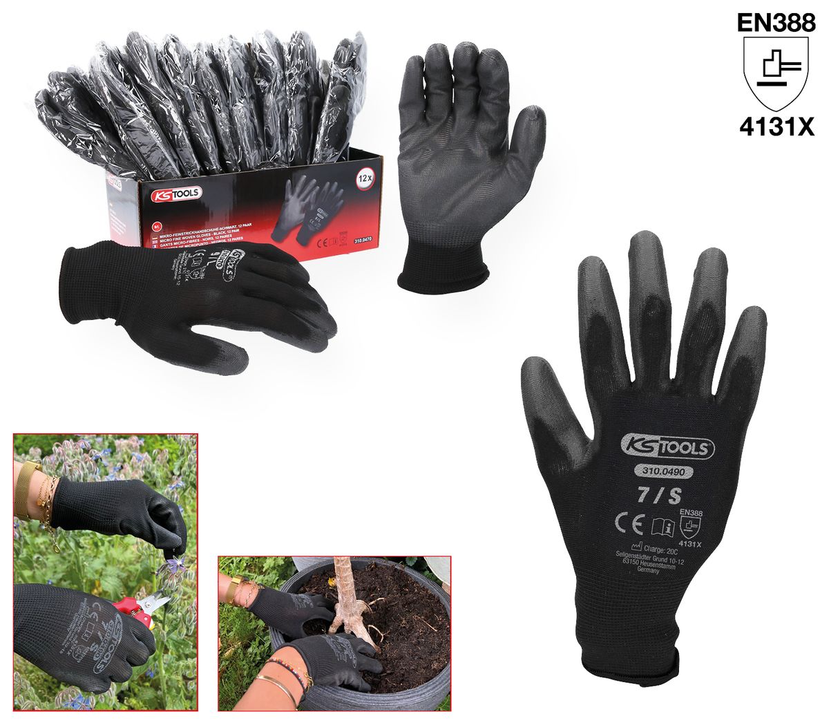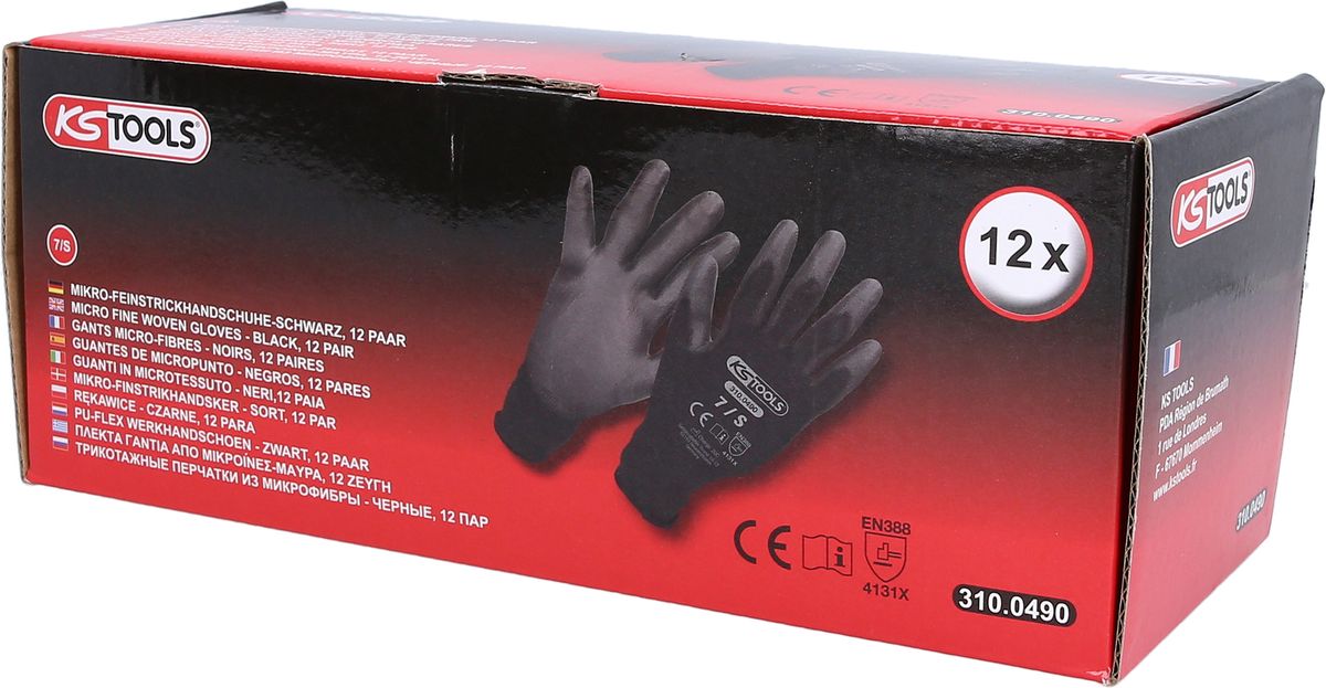KS TOOLS Mikro-Feinstrickhandschuhe-schwarz, 7, 12 Paar ( 310.0490 )