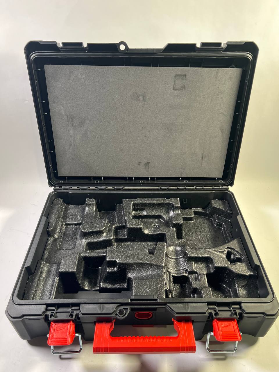 Der PACKOUT Koffer von Milwaukee besticht durch seine robuste Konstruktion durch stoßfestes Polymer. Dank des modularen Aufbewahrungssystems, bietet sich eine große Vielfalt an kombinationsmöglichkeiten zu weiteren Koffern auf dem PACKOUT System. Der Koffer ist mit der IP65 Schutzklasse zertifiziert, was Ihn Staub, Wasser und Schmutz abhalten lässt, um das Werkzeug im Koffer auch unter widrigen Wetterverhältnissen zu schützen. Verschlüsse mit Metallschließen sorgen dafür, dass der Koffer immer sicher verschlossen bleibt. Der extra stabil konstruierte Kunststoffgriff sorgt stets für richtigen Halt beim tragen. Die passende Einlage aus Styropor schützt das Werkzeug optimal vor Erschütterungen. Milwaukee ist ein Premiumhersteller von Elektrowerkzeugen, hohe Qualitätsstandards und raffinierte Werkzeugkonzepte zeichnen das Unternehmen aus.
