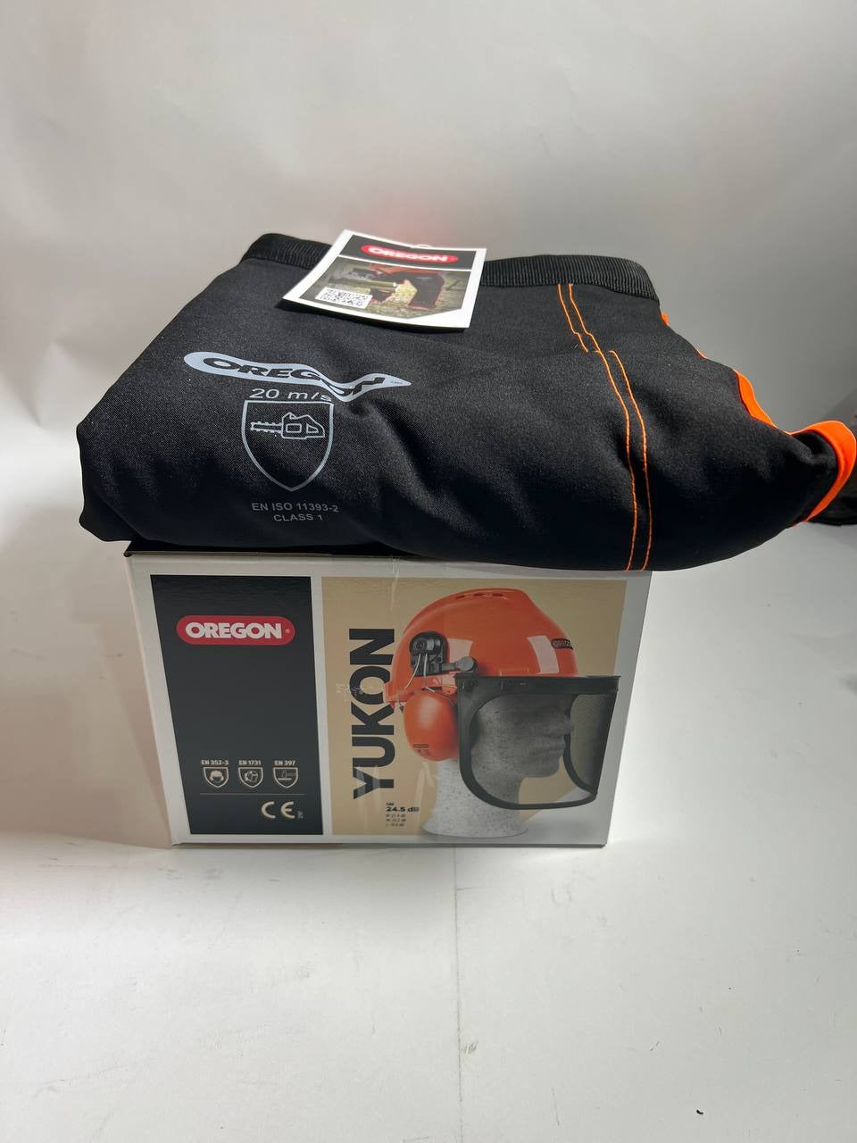 Oregon Kettensägen Schutzausrüstung Set ( 574742A ) mit Schutzhelm / Beinschutz und Handschuhe - Unvollständig