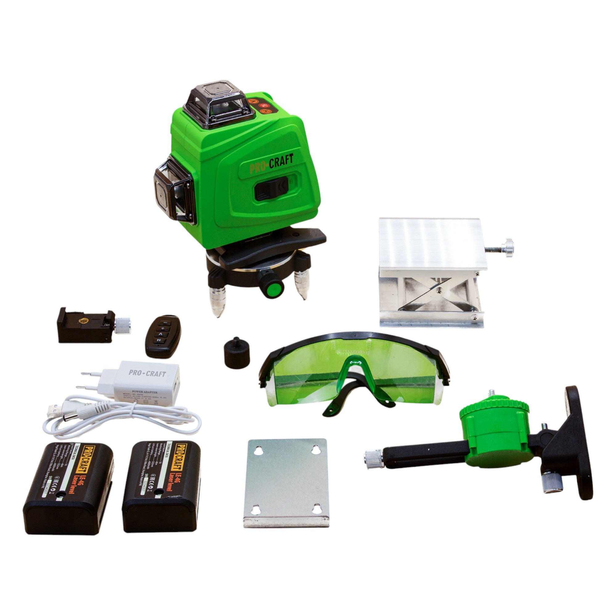 Procraft LE-4G Akku Linien- / Kreuzlinienlaser Set 3,7 V 40 m grün selbstnivellierend inkl. Akkus, Ladegerät & Zubehör