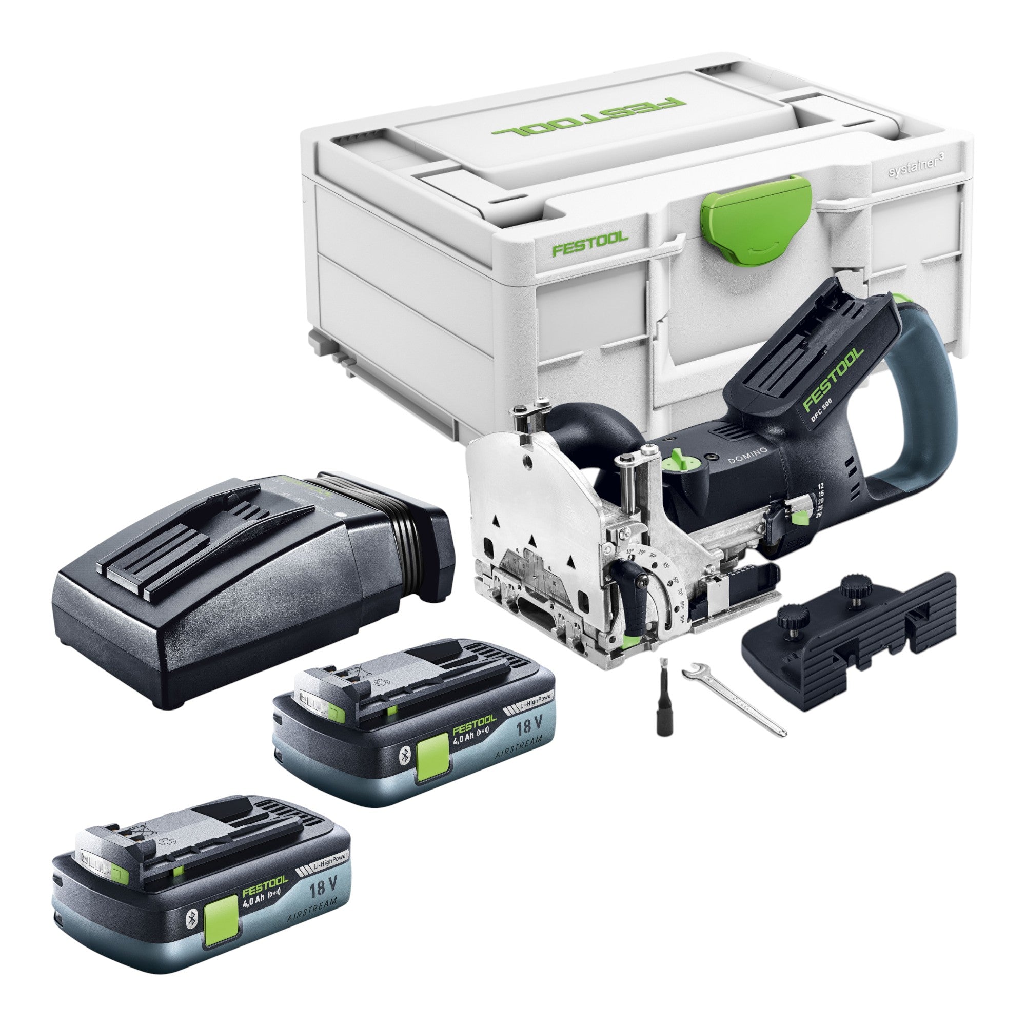 The Festool DFC 500 E-Basic cordless dowel cutter is the perfect solution for precise, stable and versatile wood joints. Part of the innovative DOMINO jointing system, this cordless dowel router enables the routing of precise, torsion-proof slotted holes using the unique pendulum routing principle. This system combines the stability of traditional mortise and tenon joints with the flexibility of flat dowels, so that both delicate and solid workpieces can be joined indoors and outdoors without any problems. Particularly noteworthy is the 100% mobility of the cordless version, which enables cordless use both in the workshop and on the construction site. The ergonomic spade handle ensures fatigue-free working, even during long periods of use. Integrated stop pins make it easier to position the dowels repeatedly and precisely, further increasing efficiency at work. The DOMINO dowels are available in various sizes from 4 x 20 mm to 10 x 50 mm and are perfectly matched to the routing depths, which are optimised for the dowel lengths and panel materials. The stable and torsion-resistant connections achieved by the special shape of the DOMINO dowels guarantee high quality and durability. The system is extremely versatile and supports various applications such as frame and rack joints in solid wood, panel joints in different materials as well as the production of stable mitre joints and detachable corner joints. In addition, the round stop enables precise round profile connections, and the DOMINO carcase and furniture connectors can be used to create stable, detachable furniture constructions.