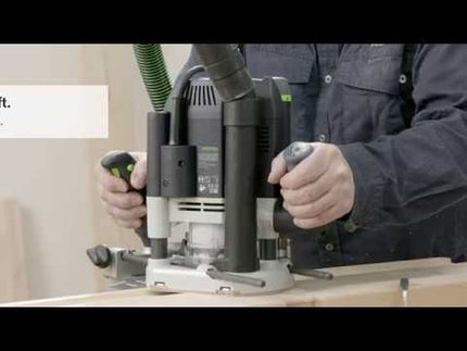 The OF 2200 from Festool is a router which, with its high power of 2200 watts, is suitable for various demanding tasks. The 80 mm routing stroke is impressive when countersinking fittings or routing with routing templates. The torsion-resistant base plate with guide pillars clamped on both sides guarantees high precision and ensures stable support when working. Thanks to the convenient spindle stop with rocker and ratchet principle, the router bit can be changed in a flash without having to move the spanner. The routing depth can be set easily and precisely to an accuracy of 1/10 mm. The quick brake stops the milling cutter in a matter of seconds, ensuring a high level of safety when milling. The MMC Electronic ( Multi-Material-Control Electronic ) guarantees material-compatible working. Replacing the copy ring and soleplate is very easy thanks to the elimination of the mounting tool. Thanks to the chip catcher and the extraction bonnet, dust and chips can be easily extracted when routing edges. The profile router setting is very easy to adjust thanks to the base plate that can be coupled and uncoupled. The 30° offset side stop ensures good ergonomics when working. It can therefore be used for various routing tasks such as rebating, grooving and profiling workpieces, routing large cut-outs, circles and arches with the multi routing template, producing worktop corner joints with the worktop template or routing door seals and edge gears in windows and doors. Festool is a premium manufacturer of power tools, characterised above all by its long tradition and very high quality of workmanship.
