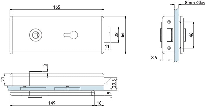 HERMAT glass door lock 6083 PZ - Genova stainless steel matt ( 3000253943 )