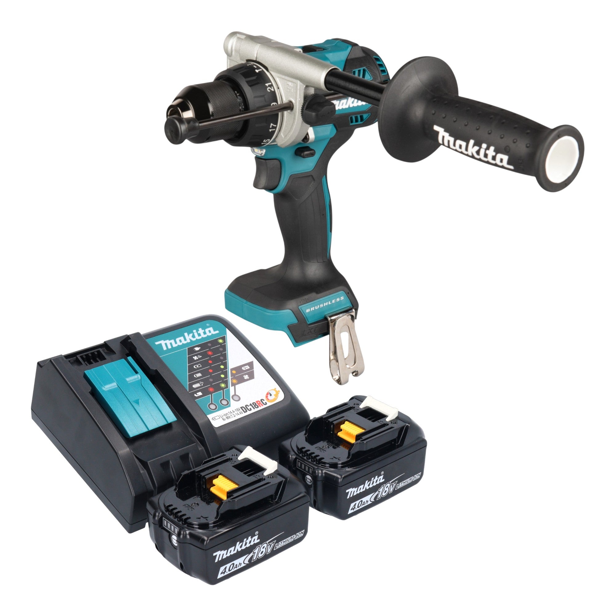 The Makita DHP 492 cordless impact drill driver is a powerful and compact machine for professional use. Equipped with 18 volts and a brushless motor, it impresses with its high efficiency and durability. The switchable impact mechanism enables flexible working depending on the application. With a maximum torque of 141 Nm - as well as 130 Nm for hard and 65 Nm for soft screwdriving - it offers sufficient power reserves for demanding tasks. The torque can be precisely adjusted in 21 stages plus a drilling stage. The features include a robust metal quick-action drill chuck, a side handle for better control and a bright double LED with pre-glow and afterglow function for optimum visibility even in dark working areas. The integrated deep discharge protection switches the tool off automatically when the battery is almost empty, while the electronic overload protection provides additional safety. An electronic brake ensures maximum efficiency and user protection. Thanks to the compact and lightweight design, fatigue-free working is supported even during long periods of use.
