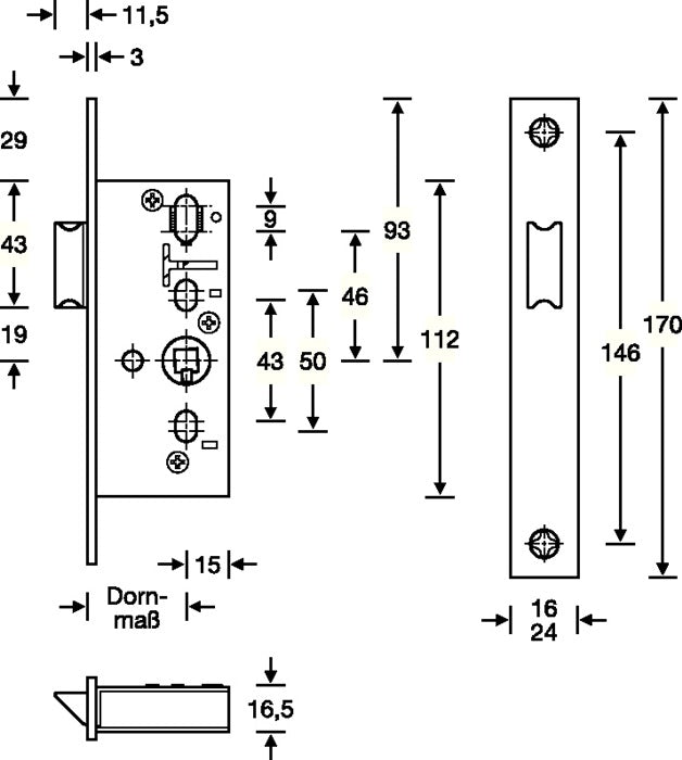 to DIN 18251-2 - steel lock case closed at top and bottom - canted - forend stainless steel - forend length 170 mm - square 8 mm - can be used DIN left / right - latch made of die-cast zinc - without striking plate