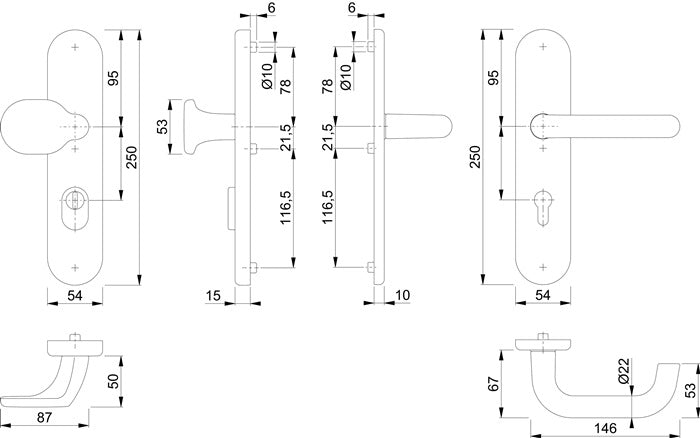 Juego de protección HOPPE Paris 86G/3332ZA/3310/138 aluminio F1 (3000209112)