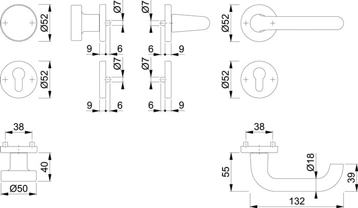 Juego de roseta para puerta interior comprobado según DIN EN 1906 (categoría de uso clase 3) - Manillas de puerta con conexión rápida de pasador (con pasador macizo de 8 mm) para grosor de puerta de 37-42 mm - Rosetas con subestructura de plástico, muelle de retorno y levas de soporte - Atornilladura oculta y continua con tornillos roscados autorroscantes - Dirección de tope DIN izquierda / derecha