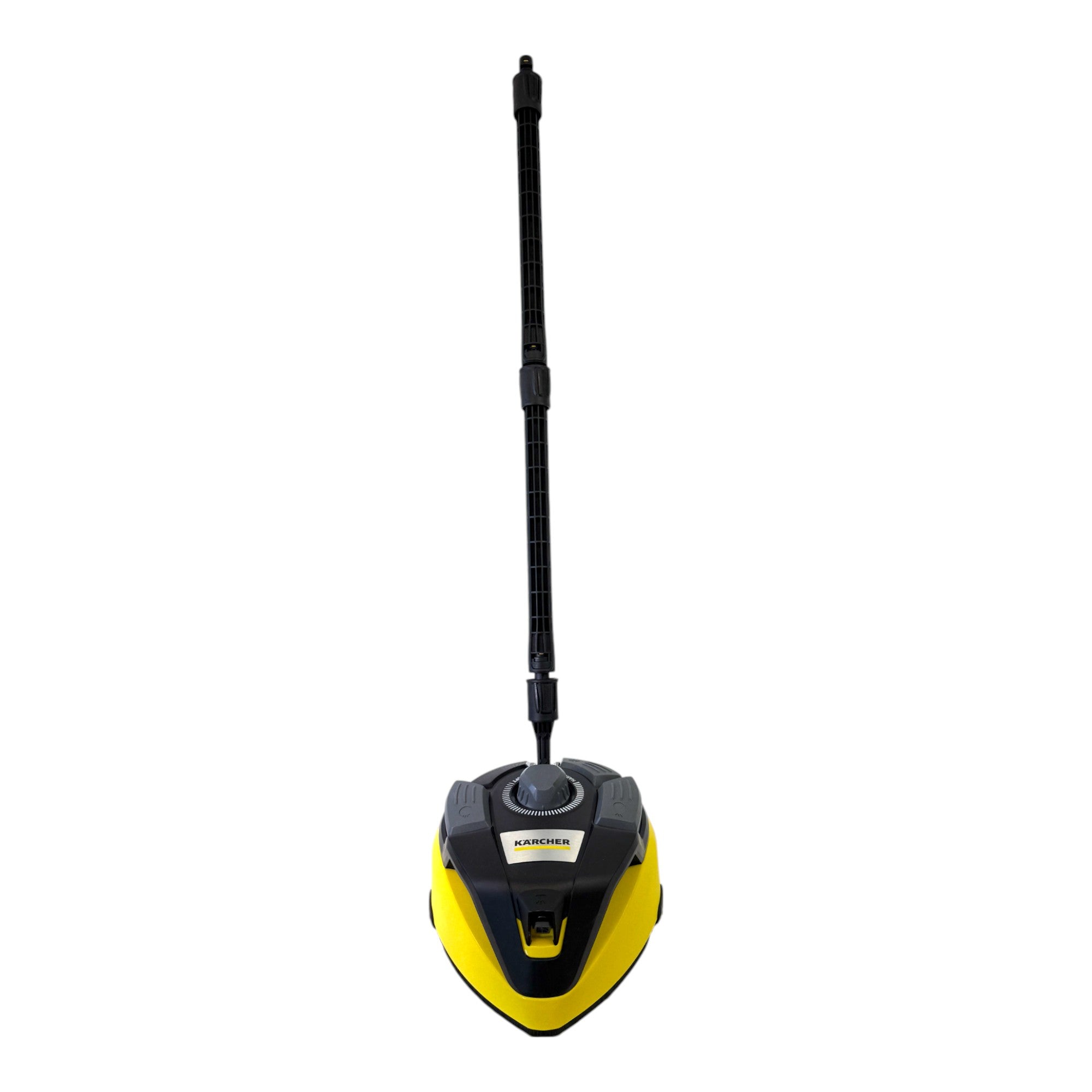 El limpiador de superficies T 7 Plus T-Racer es ideal para la limpieza eficaz y sin salpicaduras de grandes superficies exteriores. Gracias a un brazo giratorio de doble chorro, la suciedad se elimina de grandes superficies, ahorrando aproximadamente la mitad del tiempo de trabajo en comparación con la limpieza con un tubo de chorro. Además, una boquilla de potencia garantiza una limpieza a fondo de esquinas y bordes. Una boquilla de aclarado integrada facilita el aclarado de la suciedad desprendida de la superficie, eliminando la necesidad de repasar. La distancia entre las boquillas puede ajustarse, lo que permite tratar tanto superficies robustas, como el hormigón, como materiales más sensibles, como la madera. El efecto aerodeslizador facilita la maniobrabilidad del aparato. Las distintas funciones se activan simplemente pulsando el pedal. Las superficies verticales, como las puertas de garaje, también pueden limpiarse rápidamente con la práctica asa. El T-Racer es compatible con limpiadoras de alta presión de las clases K 4 a K 7.