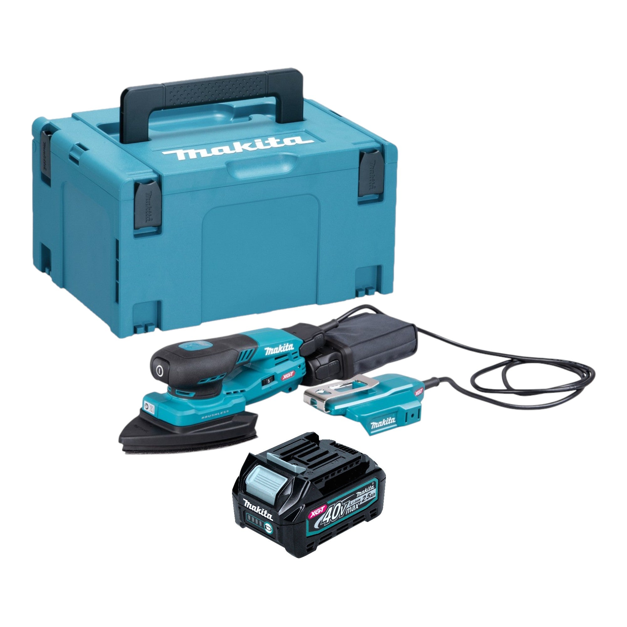 La lijadora delta a batería Makita BO006CG destaca por su diseño manejable y ligero. Puede funcionar con una batería de 40 V máx. o con una batería con conector PDC. Una característica especial es la posibilidad de conectar la batería por separado mediante un cable adaptador, lo que hace que la herramienta sea aún más fácil de manejar. Esto es ideal para trabajos que requieren precisión, ya que la batería se puede llevar, por ejemplo, en el cinturón. La placa base permite una aspiración eficaz del polvo, ya que lo conduce directamente a la caja de polvo integrada o puede controlar un sistema de aspiración de polvo externo, que se conecta al dispositivo a través de Bluetooth mediante el sistema Auto-Start Wireless (AWS). Este innovador sistema garantiza la activación automática del aspirador tan pronto como se enciende la lijadora. La velocidad de oscilación regulable de la lijadora permite obtener resultados perfectos en diferentes materiales. Gracias a la electrónica constante, la velocidad permanece estable incluso bajo carga, lo que garantiza un resultado de lijado uniforme. El motor sin escobillas no solo no necesita mantenimiento, sino que también es especialmente duradero, lo que convierte a la Makita BO006CG en una herramienta fiable para cualquier taller.