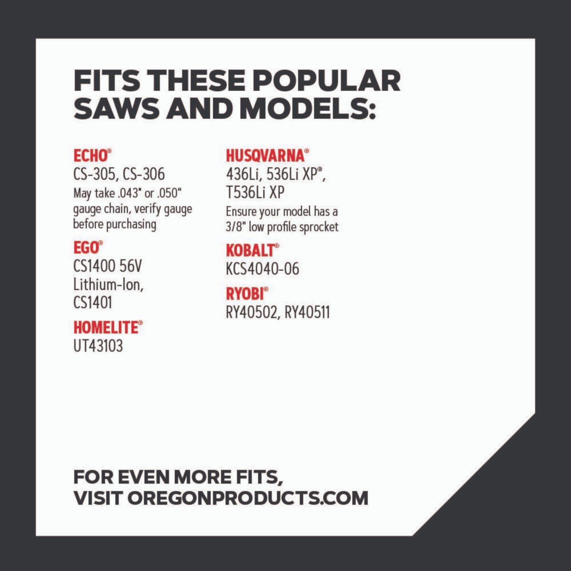 La cadena Oregon 90PX es la elección perfecta para motosierras pequeñas de baja potencia y ofrece una impresionante eficacia de cadena. Está diseñada específicamente para paisajistas y propietarios que necesitan una cadena fiable y potente. El diseño Low Profile™ de 3/8" y el sistema de corte estrecho con un corte de 1,1 mm (,043") reducen el consumo de energía y aumentan la eficiencia, ya que la cadena requiere menos potencia de la motosierra que los sistemas de corte convencionales. Con 52 eslabones de arrastre y una capacidad máxima de aserrado de 42 cm³, la cadena es ideal para su uso en trabajos más pequeños en el jardín o en la propiedad. LubriTec™ mantiene la cadena y la barra guía lubricadas en todo momento, reduce la fricción y garantiza una mayor vida útil de la cadena. La información de limado en la parte superior de la cadena facilita un afilado preciso para que el rendimiento de serrado se mantenga al máximo nivel en todo momento. Gracias a su bajo contragolpe, la cadena Oregon 90PX ofrece un alto nivel de seguridad, especialmente para los usuarios que realizan regularmente pequeños trabajos de corte. Utilice siempre esta cadena con barras que admitan un corte estrecho para garantizar el mejor rendimiento y seguridad.