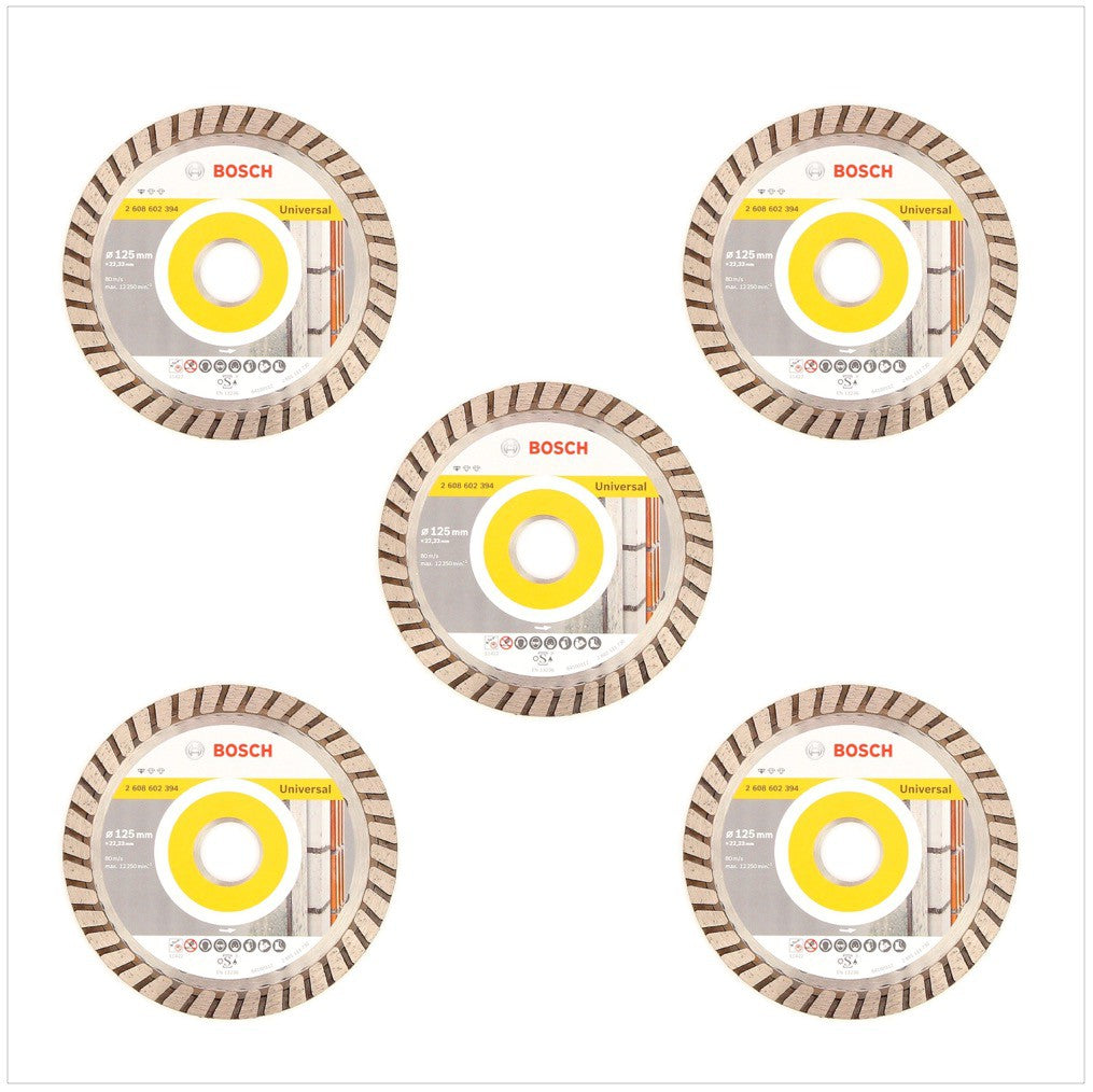 Bosch 125 mm Disque à tronçonner diamant turbo universel standard - 5 pièces (5x 2608602394) support à béton 22,23 mm