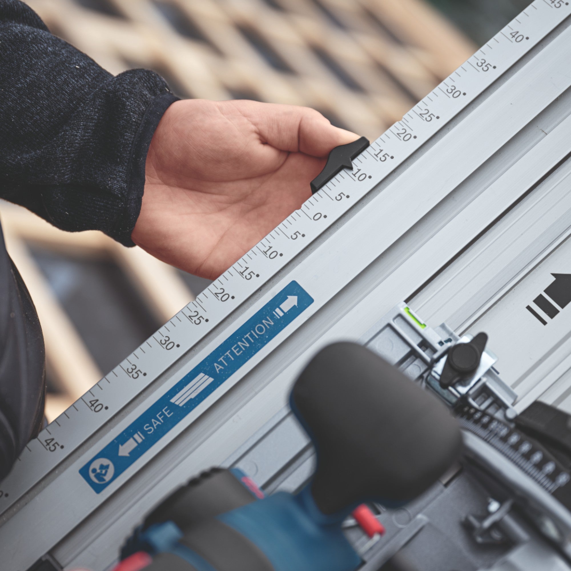 Le rail de guidage FSN 740 X Professional de Bosch est la solution parfaite pour des coupes d'angle précises et fiables de -60° à +60° pour les travaux de menuiserie, de couverture et de construction d'ossatures bois. Avec une longueur de coupe de 740 mm à 90°, il offre une grande flexibilité pour travailler les matériaux rapidement et efficacement. Le rail de guidage se glisse facilement sur la scie circulaire GX et assure un guidage précis de la coupe. La protection robuste contre l'arrachement des copeaux garantit un bord de coupe net, tandis que le revêtement adhésif antidérapant maintient la pièce en place en toute sécurité afin d'éviter qu'elle ne glisse pendant la coupe. Grâce à sa polyvalence, le rail de guidage est idéal pour les coupes transversales de bois, de matériaux composites à base de bois ainsi que pour la découpe de matériaux isolants. Il convient parfaitement à la production de meubles, à la construction de cadres de fenêtres ou de revêtements et offre une précision maximale à chaque coupe. Avec une longueur de 1.083 mm et une largeur de 228 mm, la FSN 740 X est à la fois compacte et puissante pour couvrir un grand nombre d'applications.