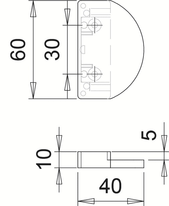 60 mm x 40 mm - vissage invisible - distance de perçage 30 mm