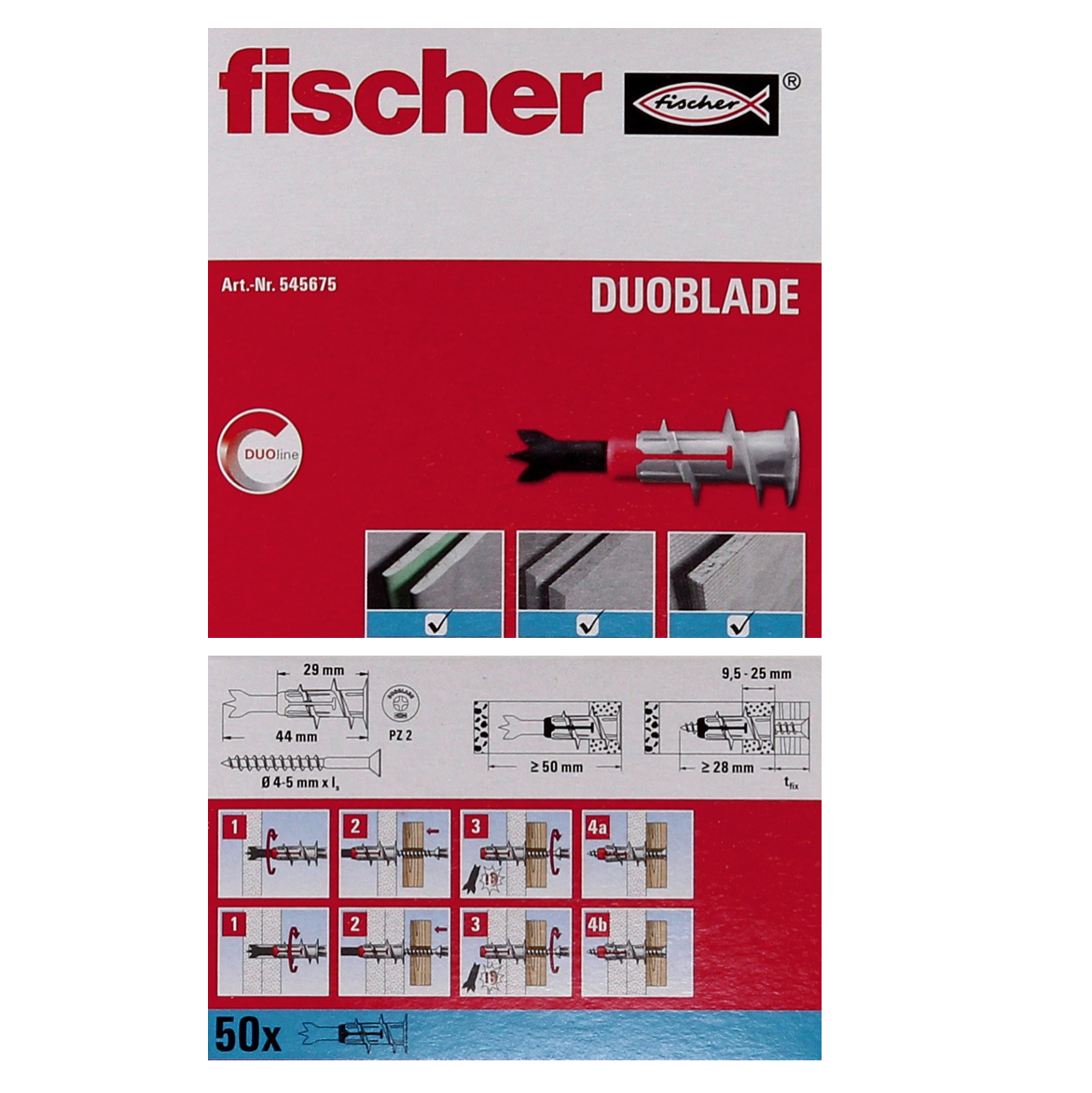 Fischer DuoBlade Chevilles autoforeuses pour plaques de carton plâtre 44mm, 50 pcs. ( 545675 )