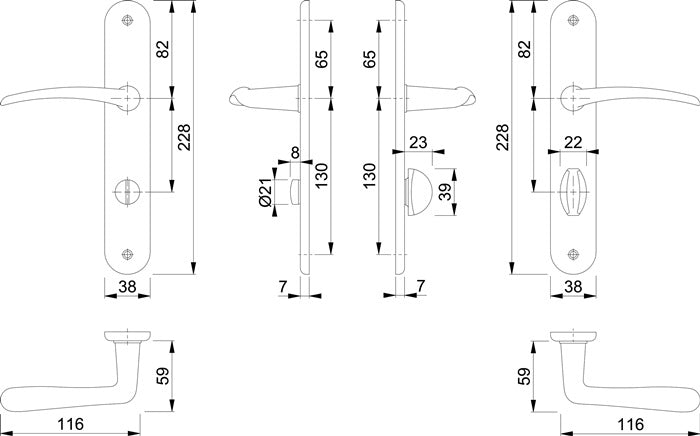 pour portes de chambres - montage fixe/rotatif avec ressort de rappel - avec tige profilée de 8 mm pour épaisseur de porte 37 - 42 mm - plaques vissées visibles - distance de la poignée 78 mm