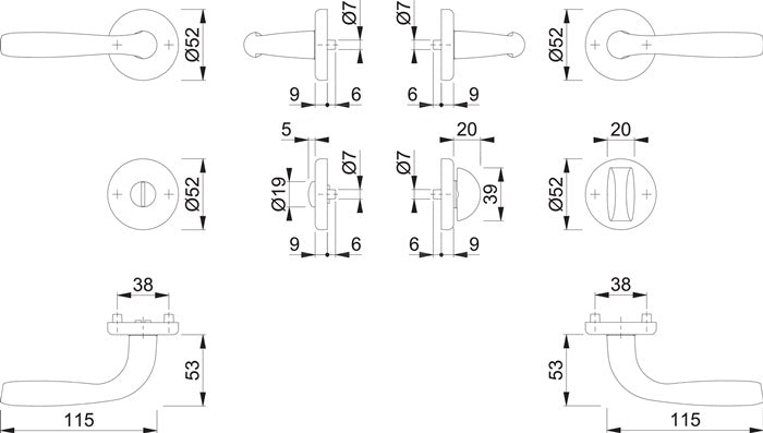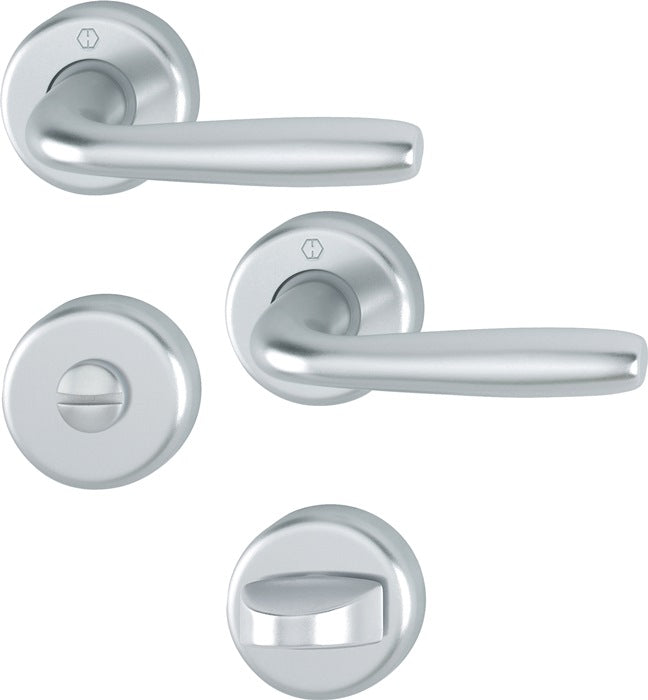 Garniture de rosaces pour portes intérieures - Poignées de porte fixes/rotatives, ressorts de rappel, paliers lisses sans entretien - Goupille pleine HOPPE - Sous-construction : plastique, cames d'appui Fixation : invisible, traversante, alternée, vis à usages multiples Montage rapide HOPPE - Sens de la butée DIN gauche / droite - Pour épaisseur de porte 37-42 mm