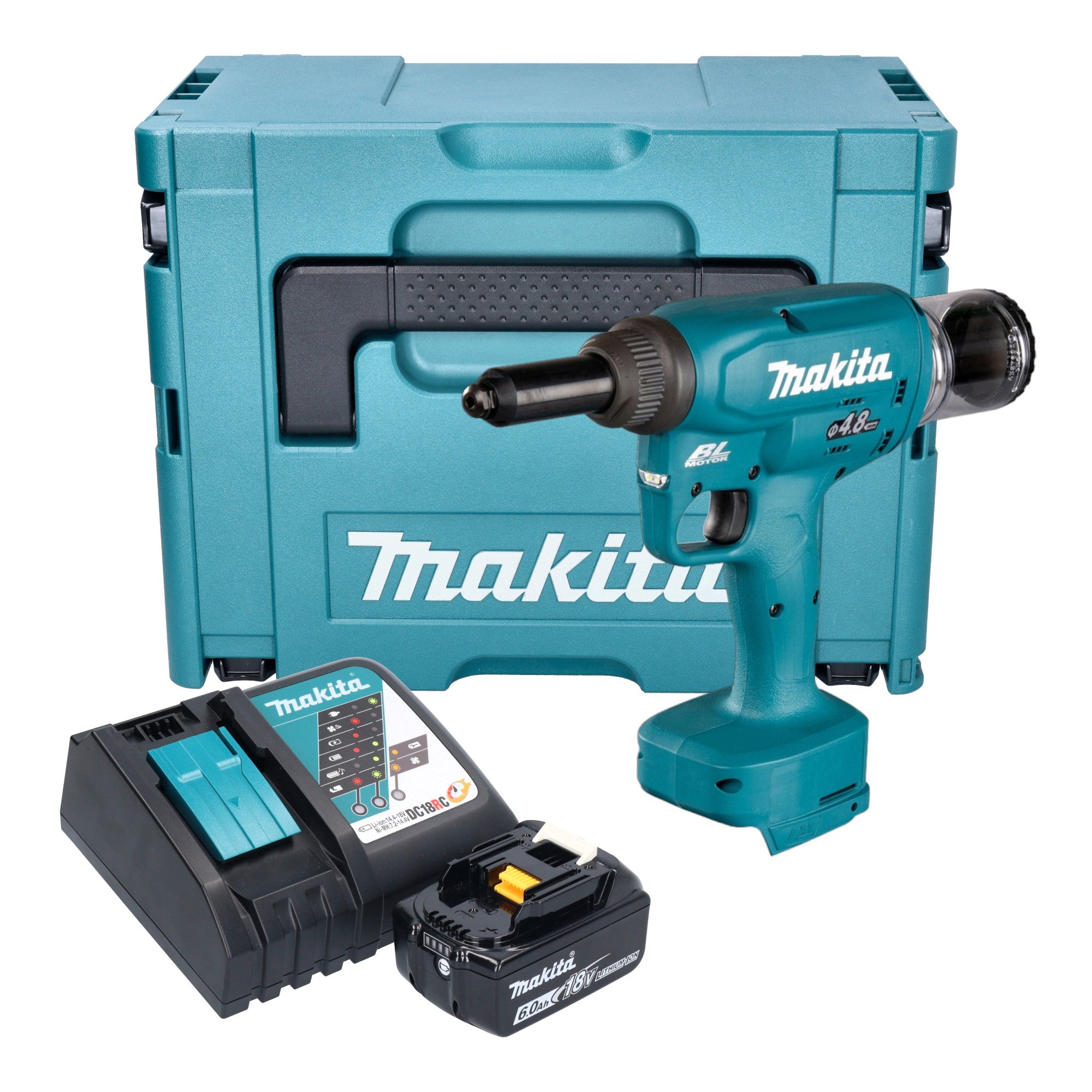 Makita DRV 150 RG1J riveteuse sans fil 18 V 10 kN 2,4 - 4,8 mm Brushless + 1x batterie 6,0 Ah + chargeur + Makpac