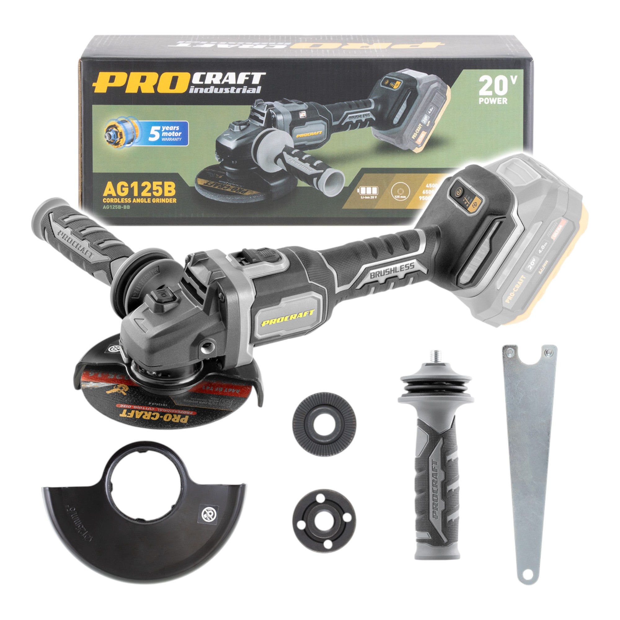 Procraft Industrial AG125Bbb Meuleuse d'angle sans fil 20 V 125 mm Brushless Solo - sans batterie, sans chargeur