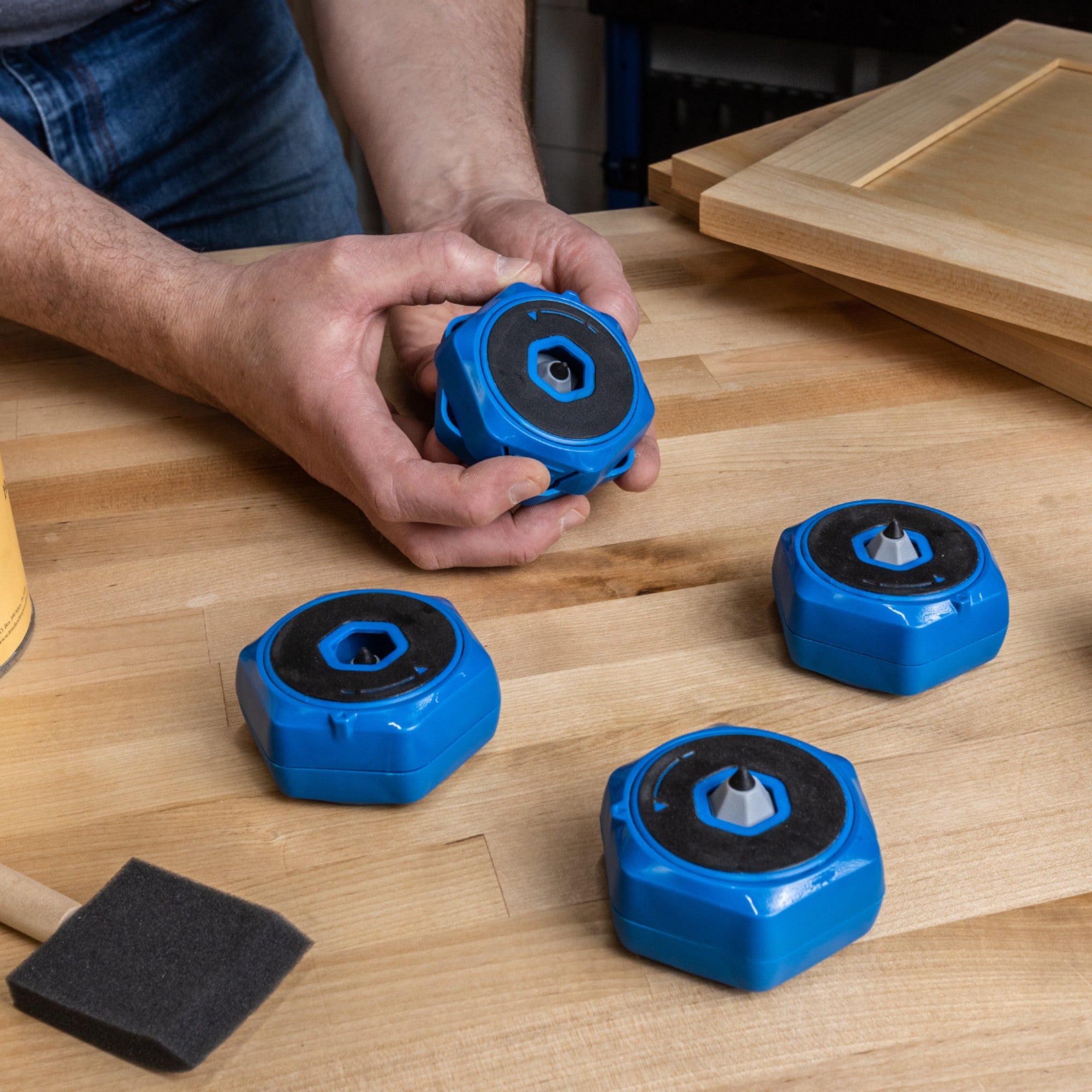 Kreg Anti Rutsch Blöcke Set ( KFS-PUCK ) 4 stabile & rutschfeste Stützen - Arbeitsblöcke mit herausfahrbaren Pins