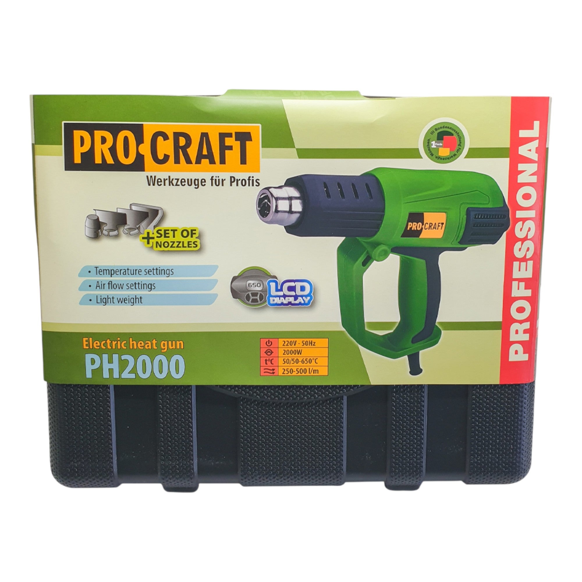 Pistola ad aria calda Procraft PH2000 2000 Watt 50 - 600 °C + 4 ugelli + valigetta