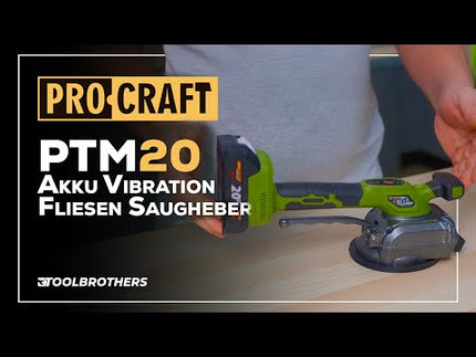 Procraft PTM20-1b-c Aspiratore vibrante per piastrelle a batteria 20 V + 1x batteria 2,0 Ah + caricabatteria + valigetta