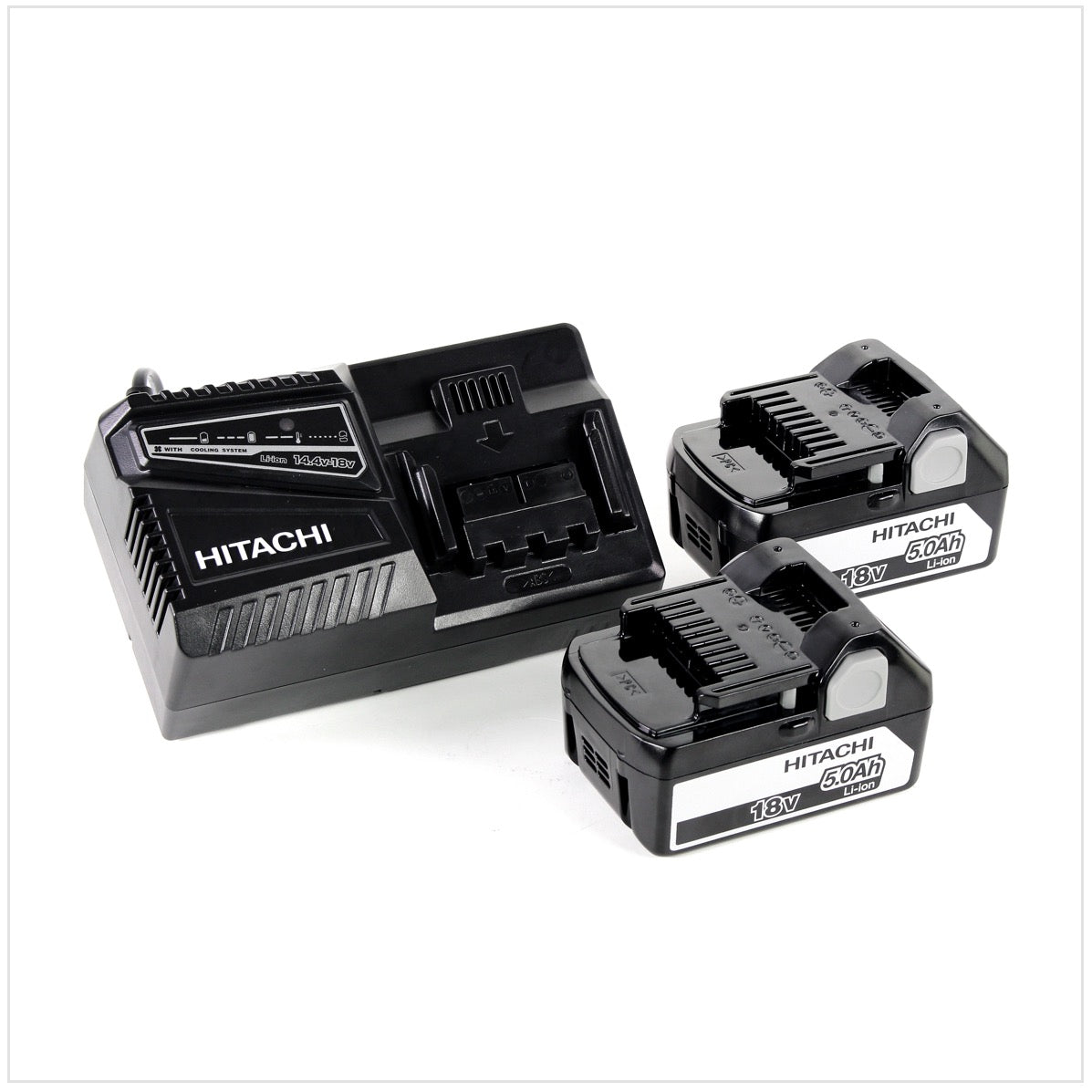 Hitachi DV 18 DGL 18 V Schlagbohrschrauber im Hitachi Transportkoffer + 2x Hitachi BSL 1850 5,0 Ah Akku + 1x Hitachi UC 18YFSL Akku Ladegerät 14,4 - 18 V