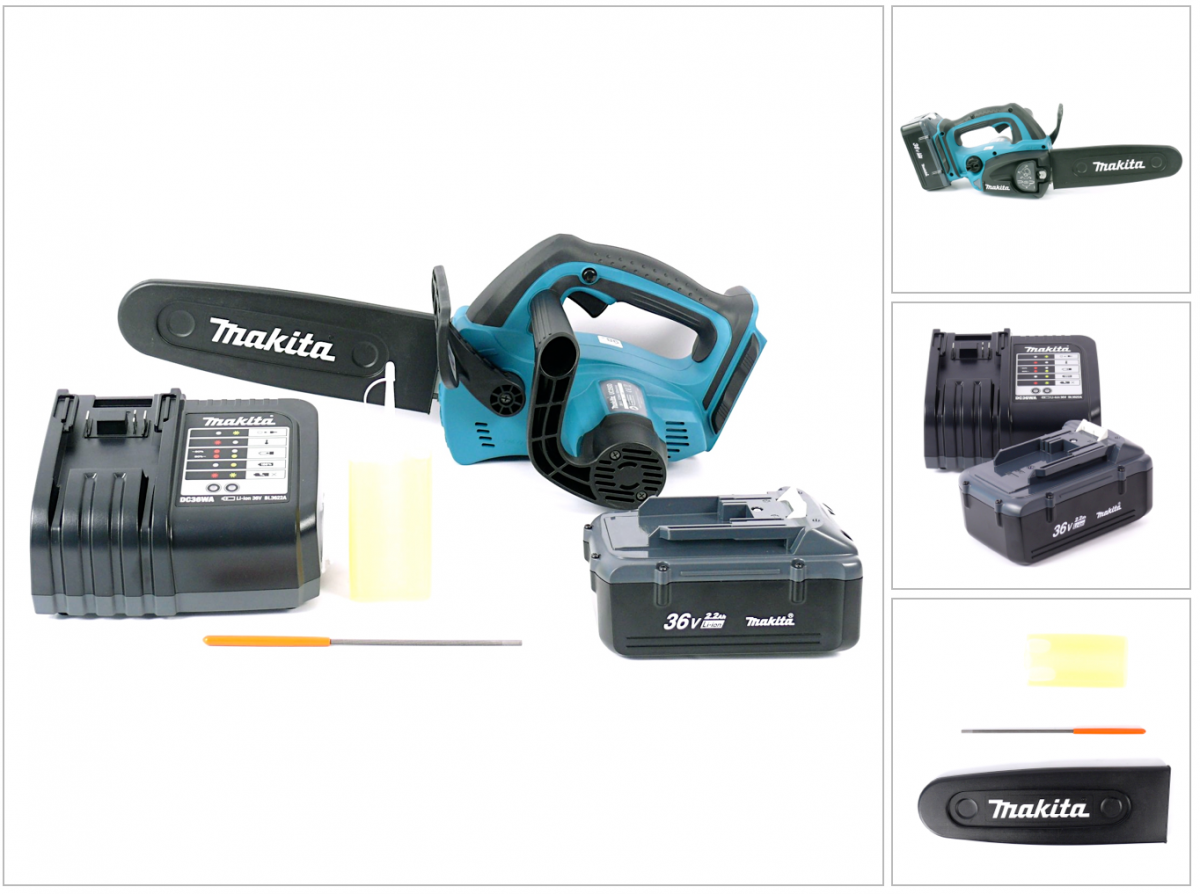Schnelles Arbeiten wird durch den starken Motor und der 36 Volt Li- Ion Akku in der Makita UC 250 DWB Akku- Kettensäge ermöglicht. Für den Komfort beim Arbeiten sorgen die gummierten Handgriffe, das werkzeuglose Spannen und Wechseln der Kette und der automatischen Kettenschmierung. Der besondere Schutz wird durch die Motor- und Kettenbremse gewährleistet. Dank der hervorragenden Eigenschaften ist diese Kettensäge die perfekte Ergänzung für ihr Gartenwerkzeug.