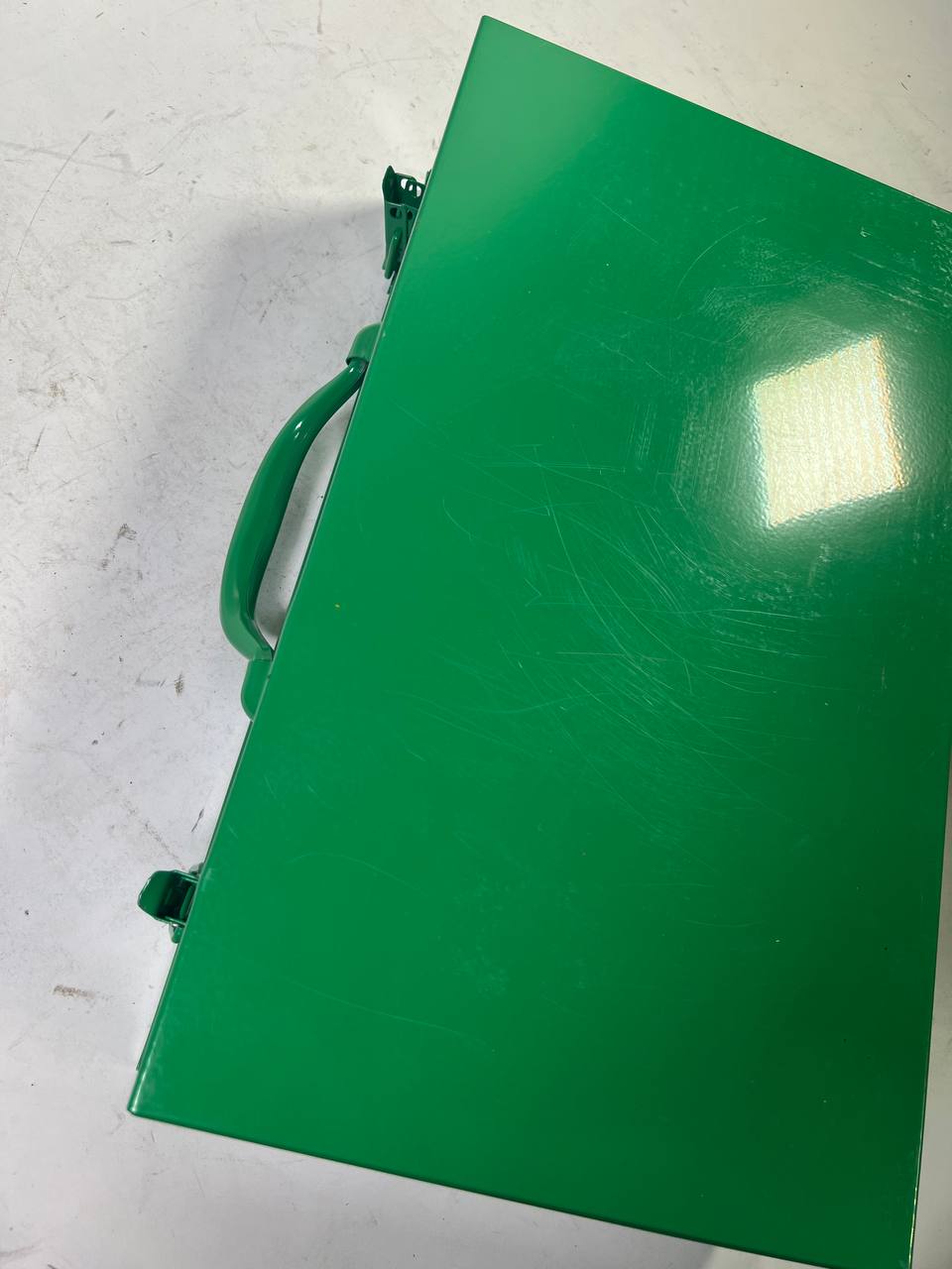 Der Prebena Metall-Transportkoffer bietet eine robuste und zuverlässige Lösung für den sicheren Transport und die Aufbewahrung von Werkzeugen und Zubehör. Mit seinen kompakten Maßen von 430 x 255 x 110 mm ist der Koffer groß genug, um eine Vielzahl von Gegenständen zu fassen, bleibt dabei jedoch handlich und leicht zu transportieren. Das grüne, stabile Metallgehäuse schützt den Inhalt effektiv vor Stößen und äußeren Einflüssen, während das Gewicht von nur 2,7 kg eine einfache Handhabung gewährleistet. Dank seiner robusten Konstruktion ist der Prebena Metall-Transportkoffer ideal für den Einsatz auf Baustellen, in Werkstätten oder für den mobilen Einsatz geeignet. Er bietet eine langlebige Aufbewahrungslösung, die sowohl funktional als auch stilvoll ist. Die hochwertige Verarbeitung sorgt dafür, dass der Koffer auch unter anspruchsvollen Bedingungen zuverlässig bleibt, und die grüne Farbe verleiht ihm ein professionelles und ansprechendes Aussehen.