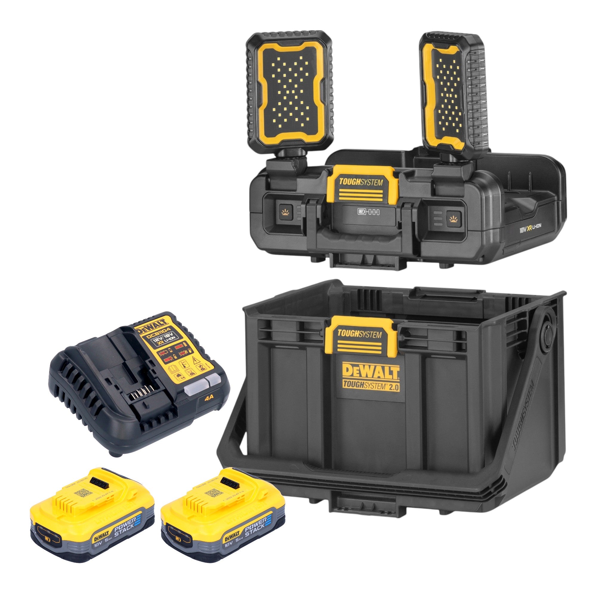 DeWalt DWST08061-1 Skrzynka narzędziowa z wbudowanym oświetleniem 395 x 352 x 255 mm ToughSystem 2.0 + 2x akumulator Powerstack 5,0 Ah + ładowarka