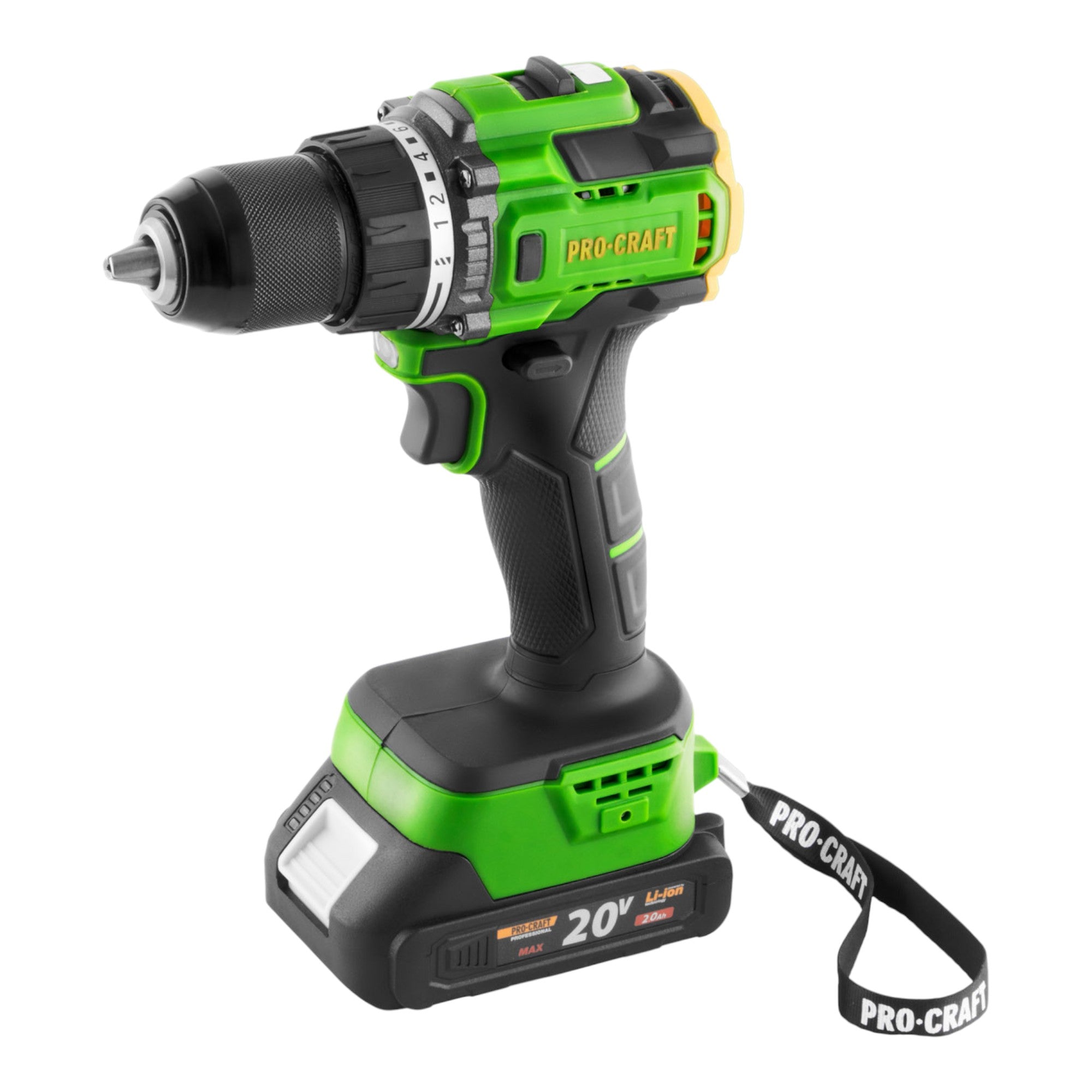 Procraft PA18LiH-1B-C akumulatorowa wiertarko-wkrętarka 20 V 80 Nm bezszczotkowa + 1x akumulator 2,0 Ah + ładowarka + walizka