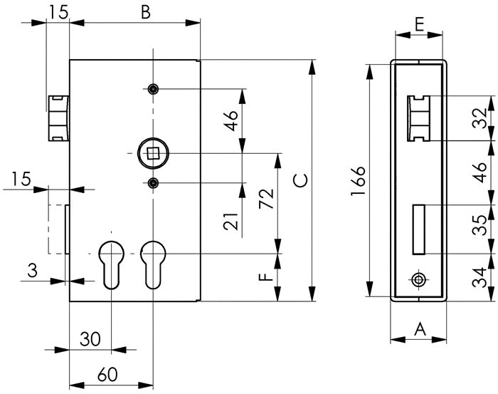 AMF Schlosskasten 140D-PZ DIN links / rechts ( 3000251255 )