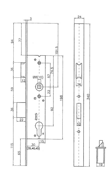 Bever Rohrrahmen-Einsteckschloss ( 3000251215 ) PZW 24/30/92/10 mm DIN links / rechts Riegelausschluss 22 mm 340 mm