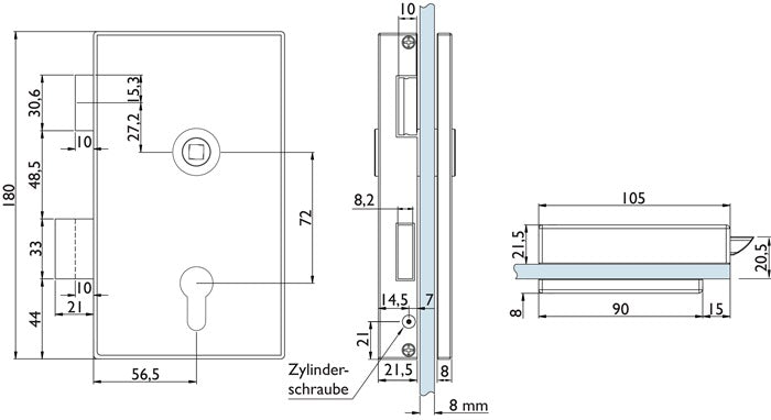 Molina 105 Technische Details : Grundschloss geprüft nach DIN EN 18251 Klasse 3 · Flüsterfalle · 2-geteilte Spezial - Klemmnuss · verschraubte Schlossabdeckungen aus Edelstahl oder Aluminium · Zubehörbeutel mit Drückerführung 16 + 18 mm inkl. Abdeckungen in Schlossfarbe · bei diesem Schlosstyp ist die Angabe links oder rechts erforderlich · mit der neuen Ausführung in LowNoise werden die Schlösser für den Einsatz im professionellen Bereich noch komfortabler · ein neu konstruiertes Innenleben des Schlosses ermöglicht, zusammen mit der bestehenden Falle mit Kunststoffeinsatz, einen leisen, Lieferung ohne Drücker und Bänder – bitte separat bestellen!