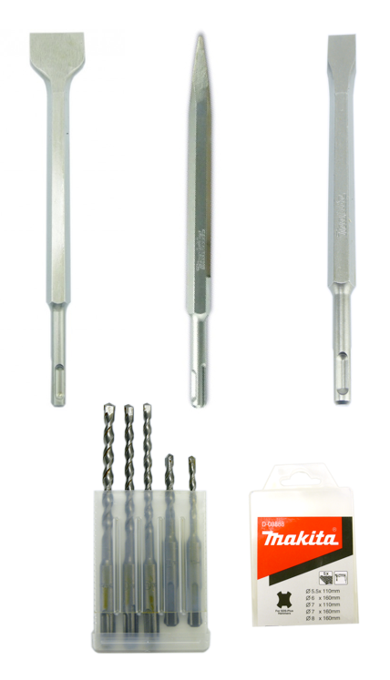 Makita HR 2611 FT Kombihammer für SDS-PLUS-Werkzeuge + Makita Koffer + Zubehörset