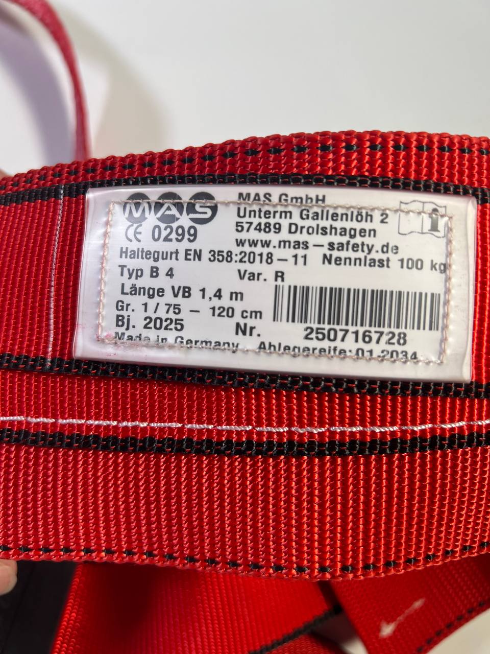 MAS Haltegurt Typ B4 Var.R EN 358 Länge ca. 14000 mm - Leicht Gebraucht