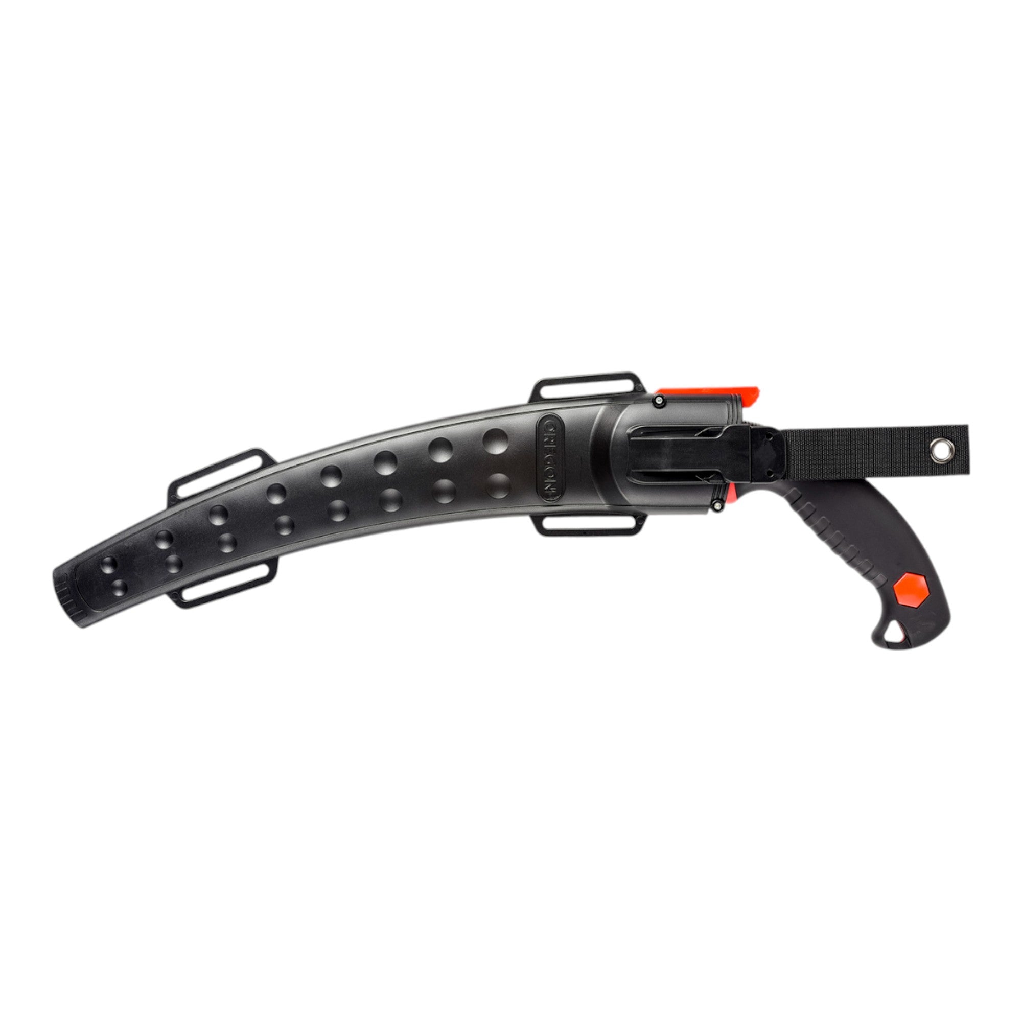 Die Oregon Baumpflege-Handsäge 33 cm (13") ist ein zuverlässiges Werkzeug für präzise und saubere Schnitte bei der Garten- und Baumpflege. Ihr hochwertiges, gebogenes Sägeblatt aus kohlenstoffreichem japanischem Stahl ist mit dreischneidigen, impulsgehärteten Zähnen ausgestattet, die für besonders glatte und mühelose Schnitte sorgen. Mit 6,5 Zähnen pro Zoll überzeugt die Säge durch Schärfe und Langlebigkeit – ideal für den regelmäßigen Einsatz. Das austauschbare, verchromte Messer erhöht die Lebensdauer des Werkzeugs und ermöglicht jederzeit beste Schnittleistungen. Für maximalen Komfort sorgt das ergonomische Griffdesign in Kombination mit einem strapazierfähigen Polypropylen-Griff, der auch bei längeren Arbeiten sicher in der Hand liegt. Die praktische Scheide mit Einrastmechanismus gewährleistet eine sichere Aufbewahrung und kann flexibel mit Gürtelschlaufe oder Gurtband befestigt werden. Damit ist die Handsäge nicht nur effizient, sondern auch sicher und komfortabel in der Handhabung. Mit der Oregon 600136 Baumpflege-Handsäge bist Du bestens ausgerüstet für anspruchsvolle Schneidarbeiten im Garten oder bei der professionellen Baumpflege.