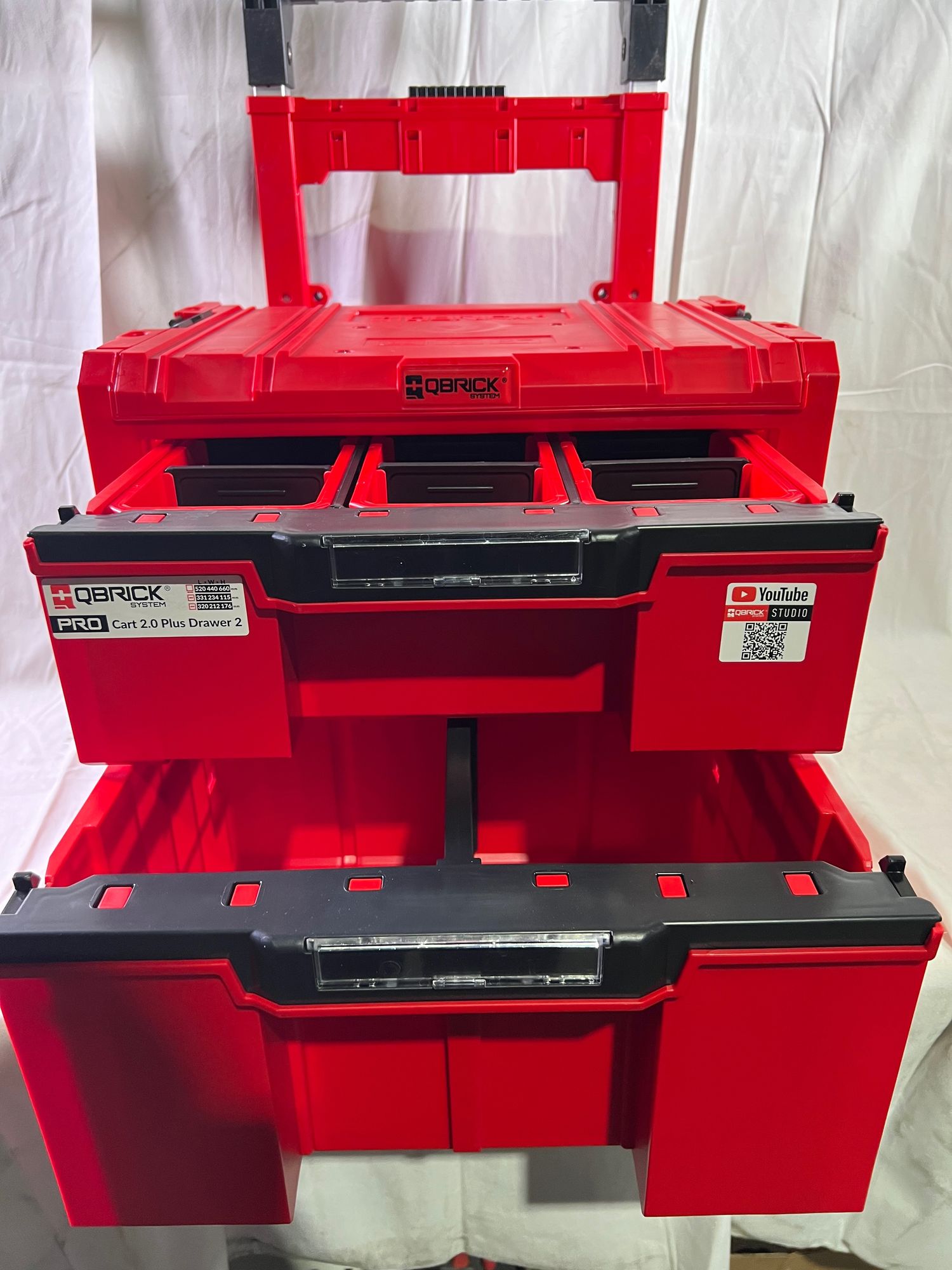 Qbrick System PRO Cart 2.0 Plus Drawer 2 Red Ultra HD Custom mobile Box auf Rädern 520 x 415 x 660 mm 9,5 l 12 l abnehmbarer Doppelteleskopgriff - Beschädigt
