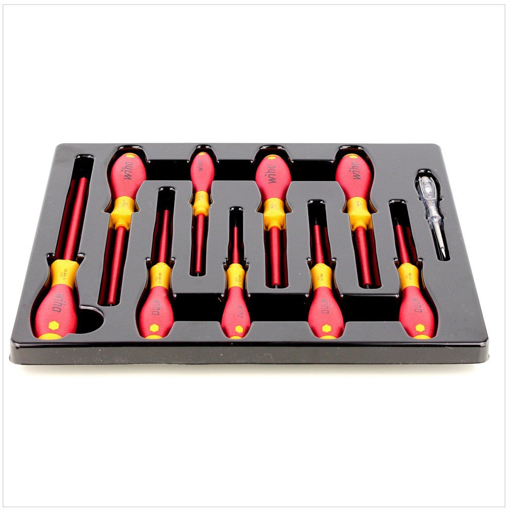 Das 31 teilige Elektriker Werkzeug Set von Wiha überzeugt durch sein Umfangreiches Sortiment und die geprüfte Robustheit und Qualität der einzelnen Werkzeugbestandteile. Die Schrauber wurden mit VDE- und GS-Geprüft ausgezeichnet und sind zudem bis 10000 V AC schutzisoliert. Die ergonomische Griffgestaltung erleichtert das Arbeiten und schont die Gelenke. Ein richtiges Drehmoment schützt vor Materialbeschädigungen und Nacharbeiten, zugleich benötigt man mit den Wiha Zangen weniger Kraft, als mit vergleichbaren anderen.