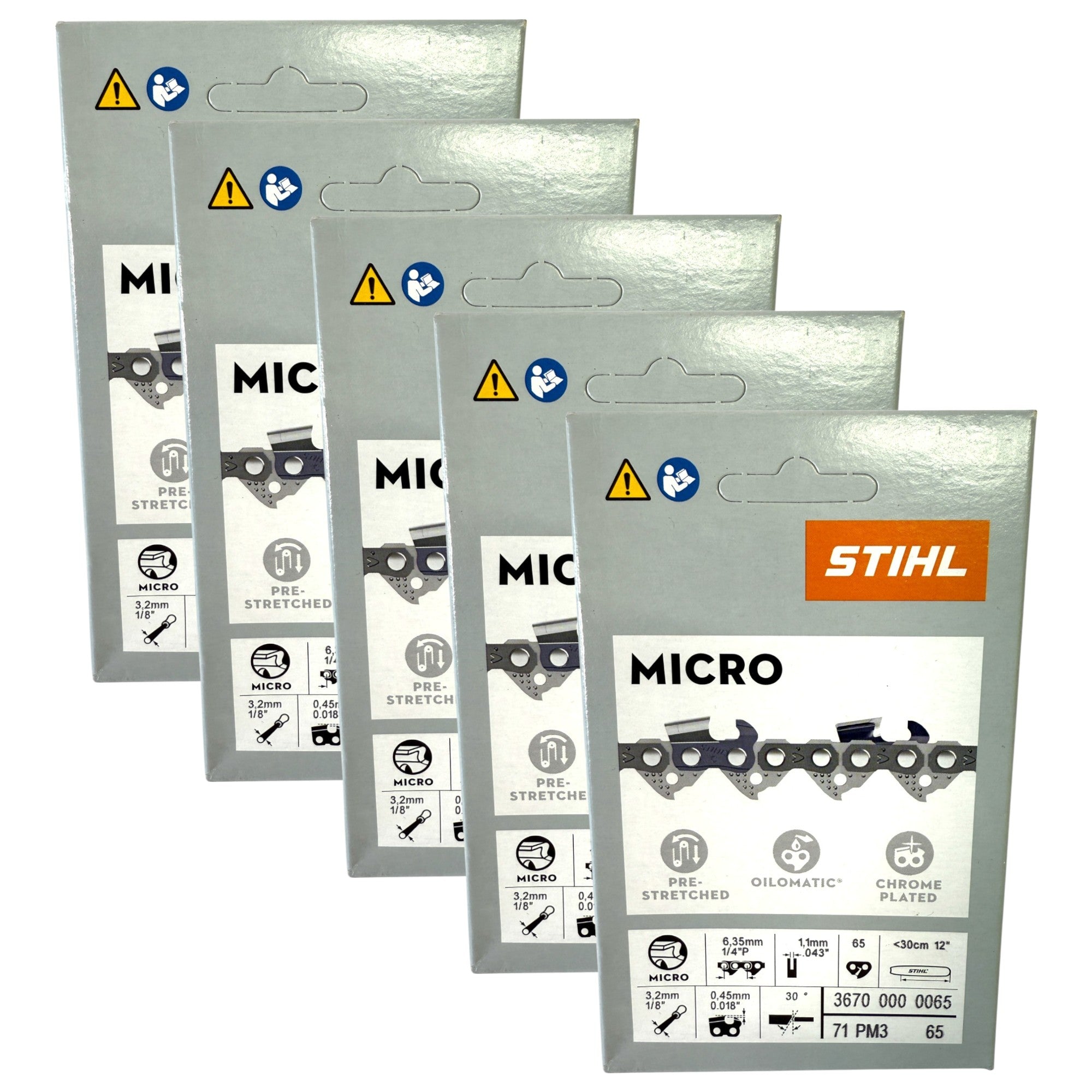Stihl 5x 1/4" Picco Micro 3 (PM3) Sägekette 30 cm 1/4" P 1,1 mm 65 TG 5 Stück ( 5x 36700000065 )