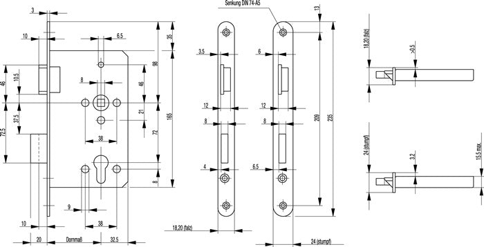BKS Zimmertür-Einsteckschloss 0515 PZ 24/ 55/72/8 mm DIN rechts ( 3322024018 )