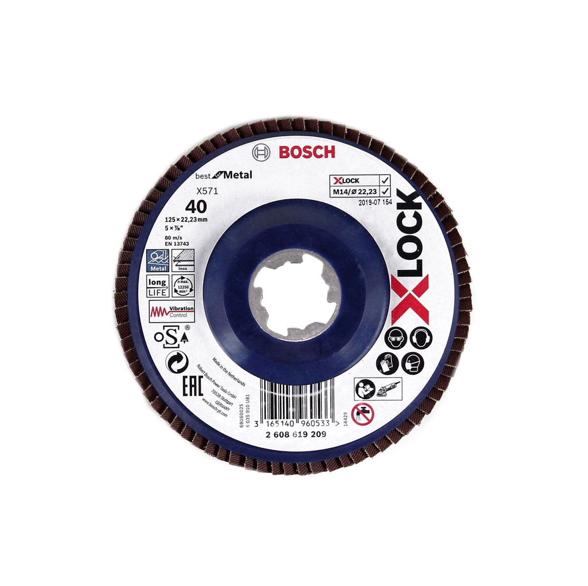 Bosch 10x Fächerschleifscheibe X571 X-LOCK Best for Metal 125x22,23mm K40 ( 10x 2608619209 ) gerade Ausführung