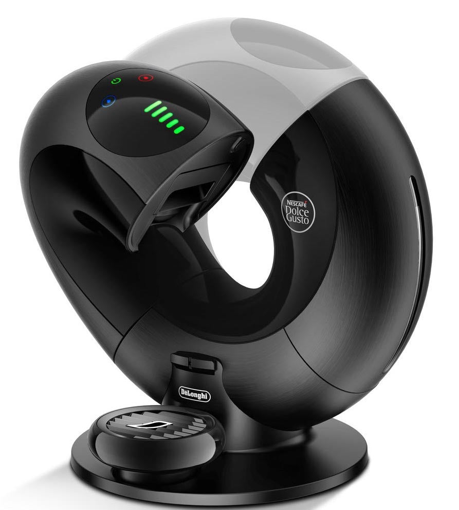 Die Kapsel Kaffeemaschine aus dem Hause De'Longhi ist eine designtechnische Kunst, die jedermann eine exakte Geschmacksexplosion mit einfacher Bedienung ermöglicht. Durch das Kapselsystem von Nescafe Dolce Gusto, lassen sich eine Vielfallt an heißen und kalten Kaffee-, Tee- und Milchvariationen zubereiten. Durch eine einfache Berührung am Sensor-Touch Bedienfeld an der oberseite der Maschine öffnet sich die elegante kreisförmige Maschine automatisch für die Getränkezubereitung. Mit ihrem Gewicht von 3,5 kg ist leicht und kompakt und lässt sich leicht in jeder Küche oder zu Hause platzieren und bewegen. Am Sensor-Touch Bedienfeld können Sie die Spezialitäten von aromatischen Espresso bis hin zum Kaffee im XL-Format mit bis zu 300 ml Füllmenge gewählt und zubereitet werden. Die intelligente Flow-Stop-Technologie stoppt die Maschine nach der Zubereitung automatisch. So können Sie die leckeren Nescafé Dolce Gusto Heiß- und Kaltgetränke einfach und schnell genießen.