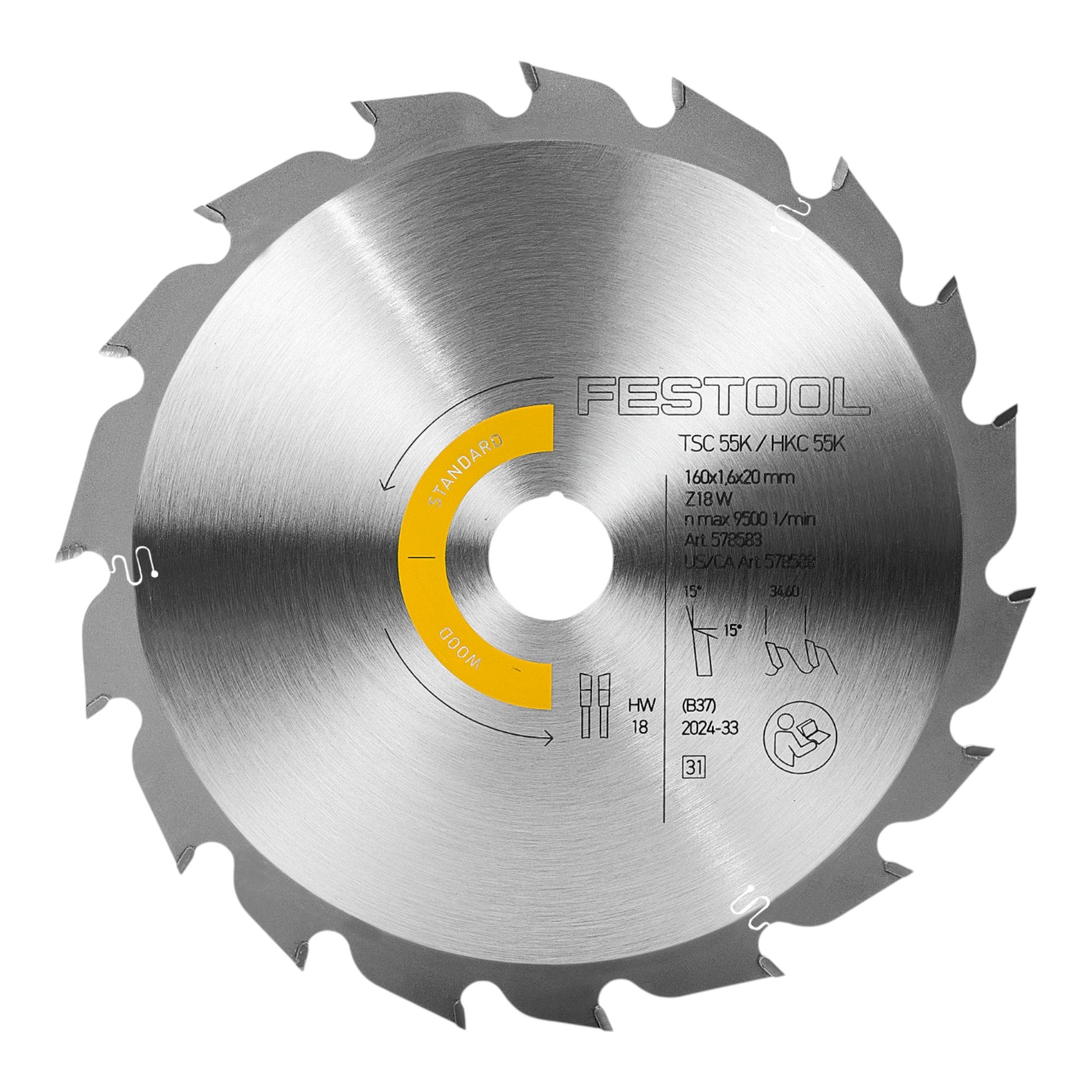 - 1x Festool HW 160x1,6x20 W18 Kreissägeblatt WOOD STANDARD ( 578583 )
