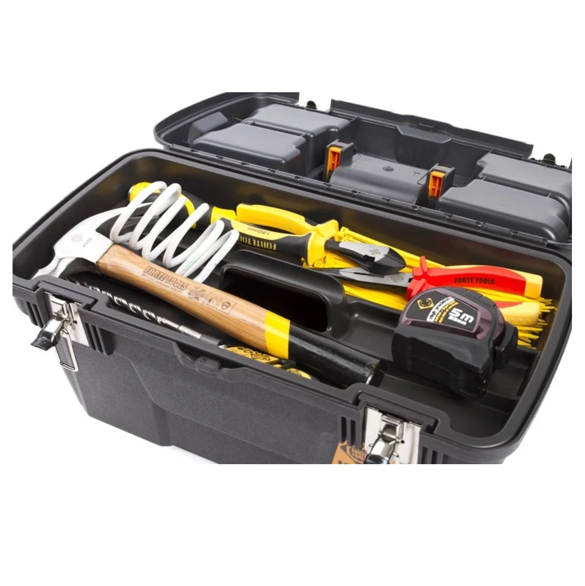 FORTE Tools MG-22 Jumbo Toolbox in 58x23x31 cm, Werkzeugkoffer, Koffer mit Metall-Laschen und internen Organizer, herausnehmbar, abschließbar ( 000051144585 )