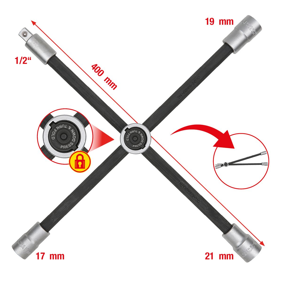 Rad-Kreuzschlüssel mit Gleitgelenk für PKW, 1/2"x17x19x21mm · Rad-Kreuzschlüssel mit Gleitgelenk für PKW