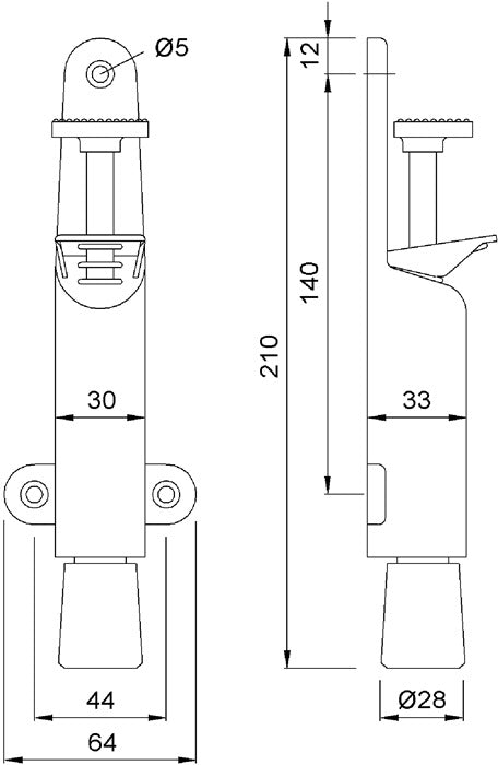 aus Stahl · silberfarbig lackiert · Türmontage · Abstand Unterkante Tür bis Stopfen: 5-10 mm · Türgewicht ca. 40 kg · 30x210 mm · 33 mm Tiefe · Stopfen aus Gummi schwarz · die serienmäßig montierte Konterfeder erhöht den Anpressdruck auf dem Boden