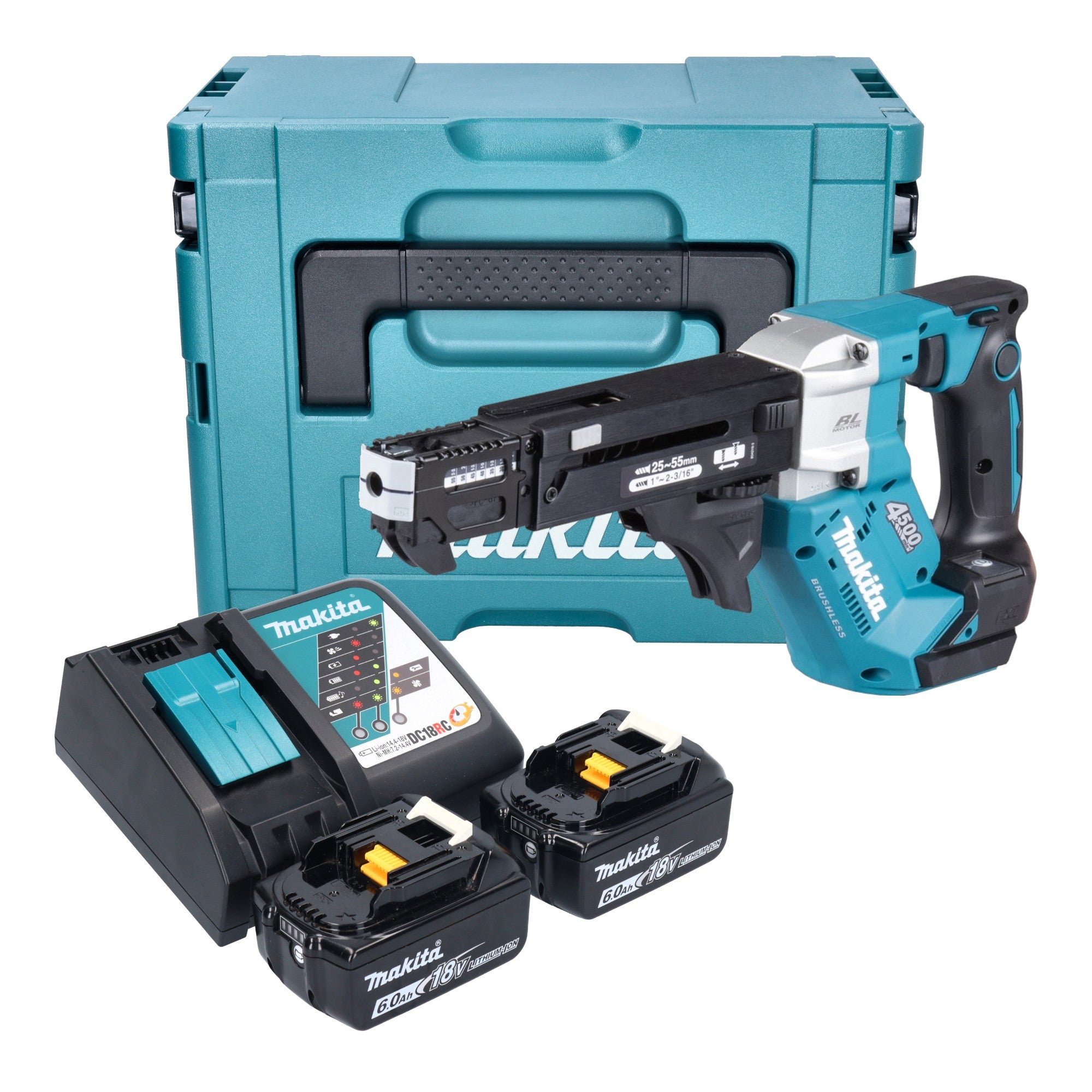 Makita DFR 552 RGJ Akku Magazinschrauber 18 V 25 - 55 mm Brushless + 2x Akku 6,0 Ah + Ladegerät + Makpac