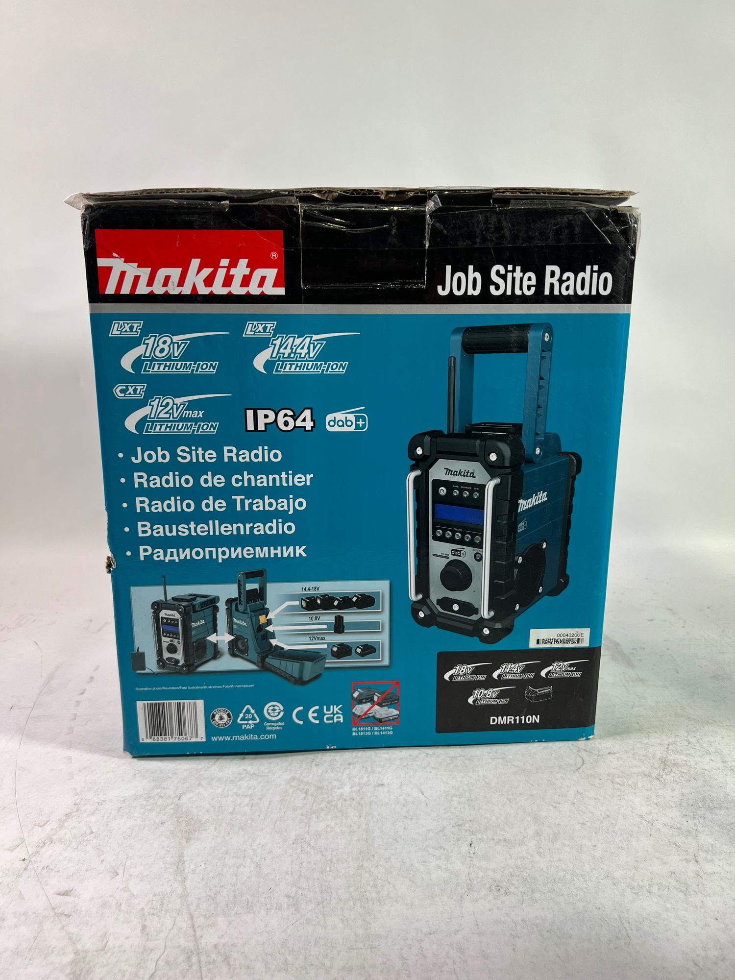 Makita DMR 110 NW Akku Baustellenradio 12 V - 18 V IP64 DAB+ Solo - ohne Akku, ohne Ladegerät - Reparaturgerät